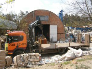 Заказчик занимался переработкой отходов полиэтилена и переезжал на новое место. В старом цеху, заваленный со всех сторон отходами, стоял пресс, который нам предстояло вытащить из цеха, погрузить на манипулятор и после переезда — разгрузить и, соответственно, осуществить монтаж пресса. Весил пресс около 6 тонн и длиной был больше шести метров. Работы проводились в Киевской области.