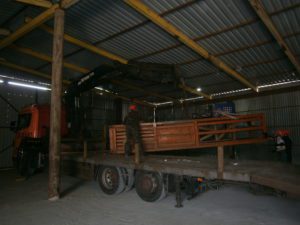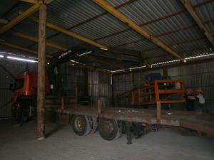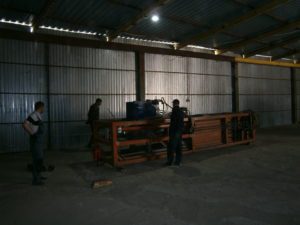 По словам заказчика, в новом цеху должно было быть очень просторно, а потому — быстро и несложно. Но очередной раз все оказалось не так. Ворота в цех были низкими и заехать в них манипулятор не смог. Были найдены запасные ворота, с другой стороны цеха. Они были повыше, но, чтобы добраться до места установки, предстояло прокрасться сквозь цех. Цех не радовал, низкие покатые потолки и частые опорные колонны навевали тоску. Если водитель откажется — а есть все основания — нам крышка, до ночи не закончим. Но «Автосос» порадовал в очередной раз. Медленно маневрируя между колоннами, огромная машина буквально прокралась по цеху и остановилась возле назначенного места. Максимально укоротив паук, водитель смог снять груз с машины и аккуратно поставить его на деревянные бруски.