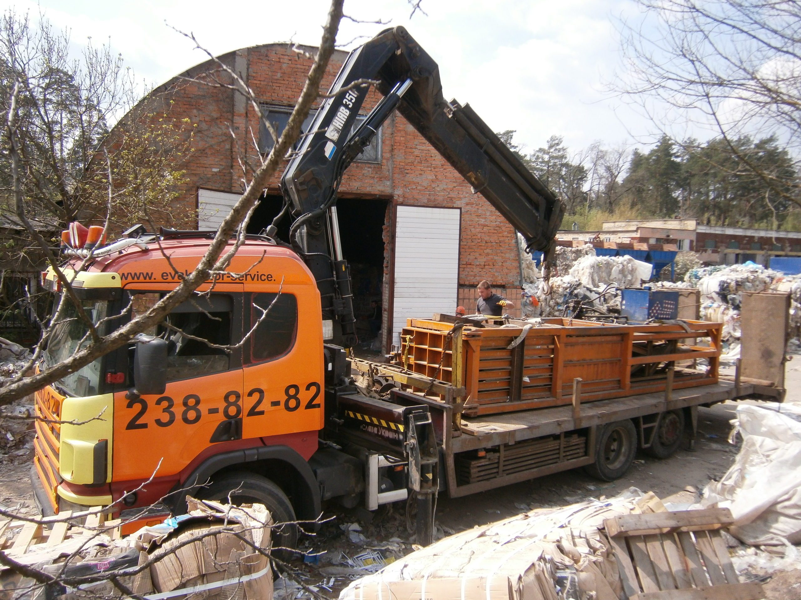 Заказчик занимался переработкой отходов полиэтилена и переезжал на новое место. В старом цеху, заваленный со всех сторон отходами, стоял пресс, который нам предстояло вытащить из цеха, погрузить на манипулятор и после переезда — разгрузить и, соответственно, осуществить монтаж пресса. Весил пресс около 6 тонн и длиной был больше шести метров. Работы проводились в Киевской области.