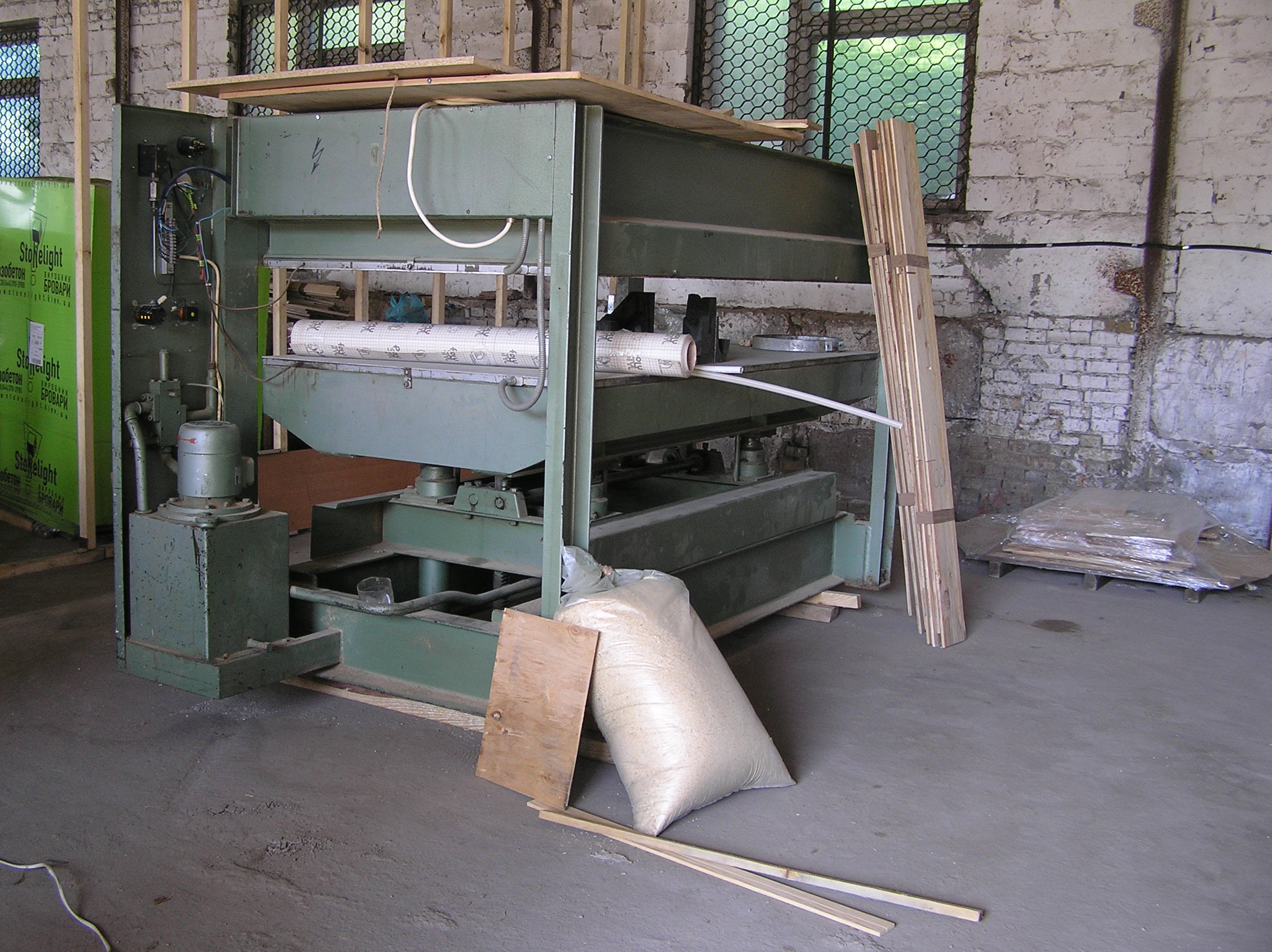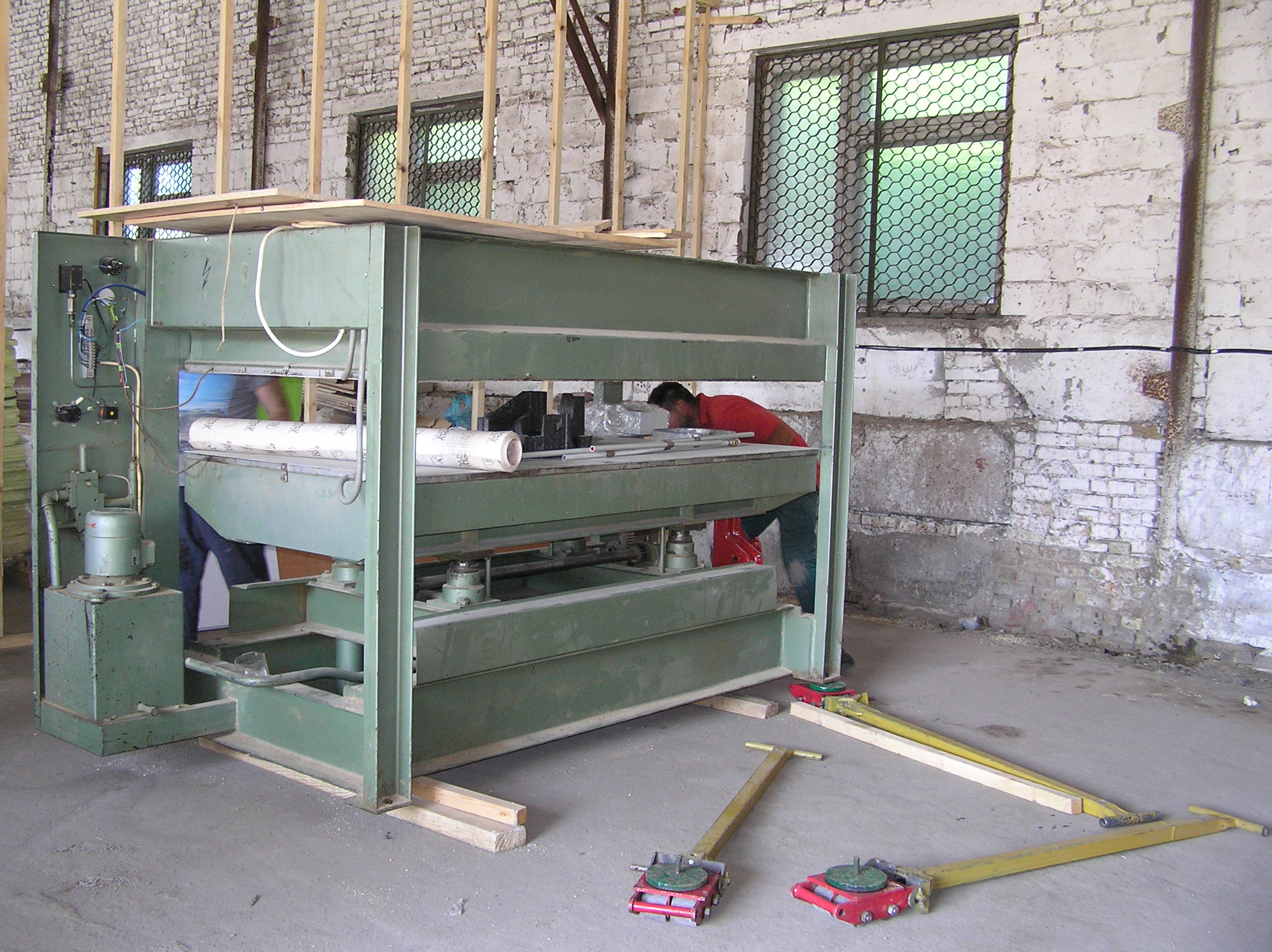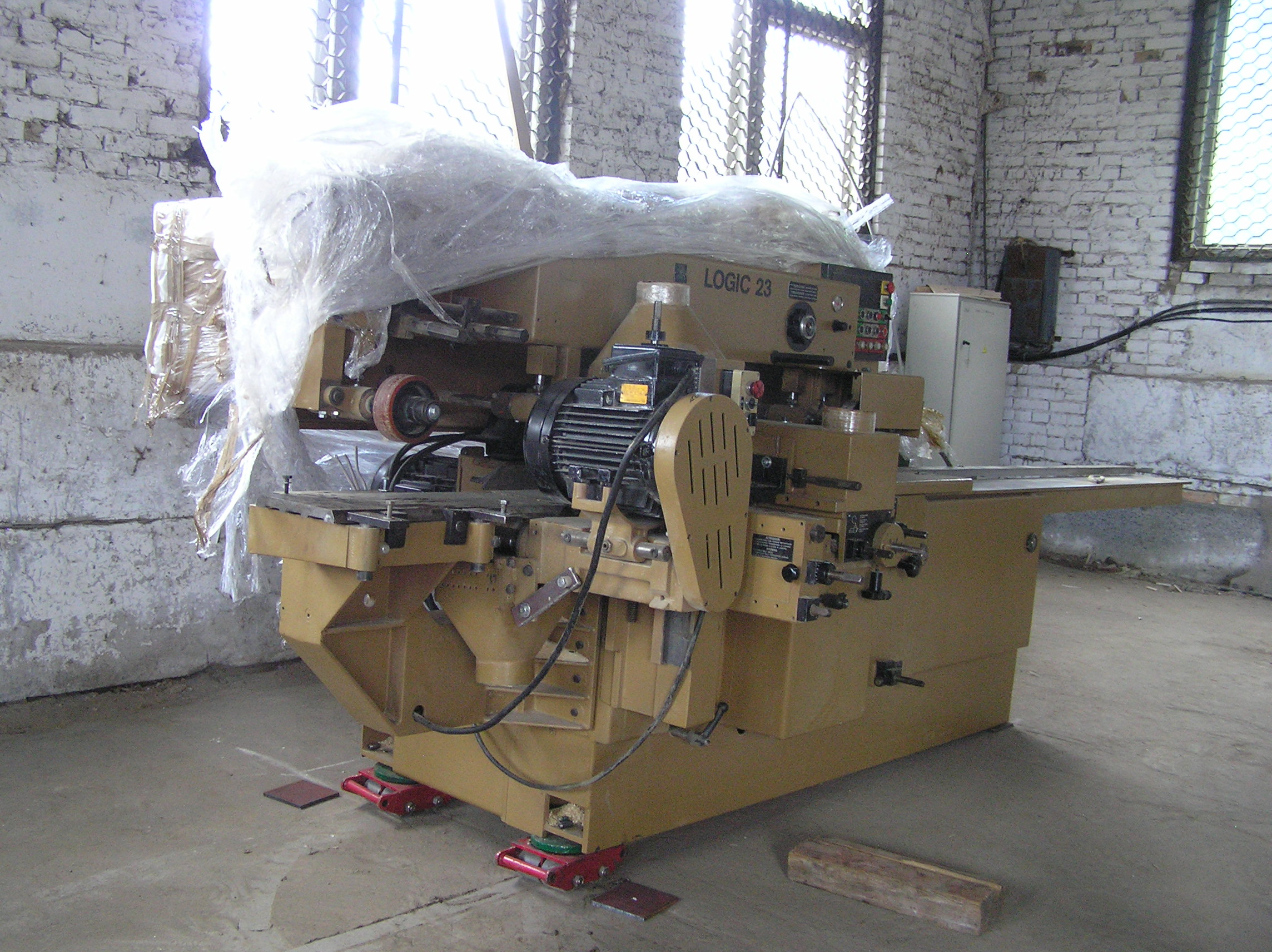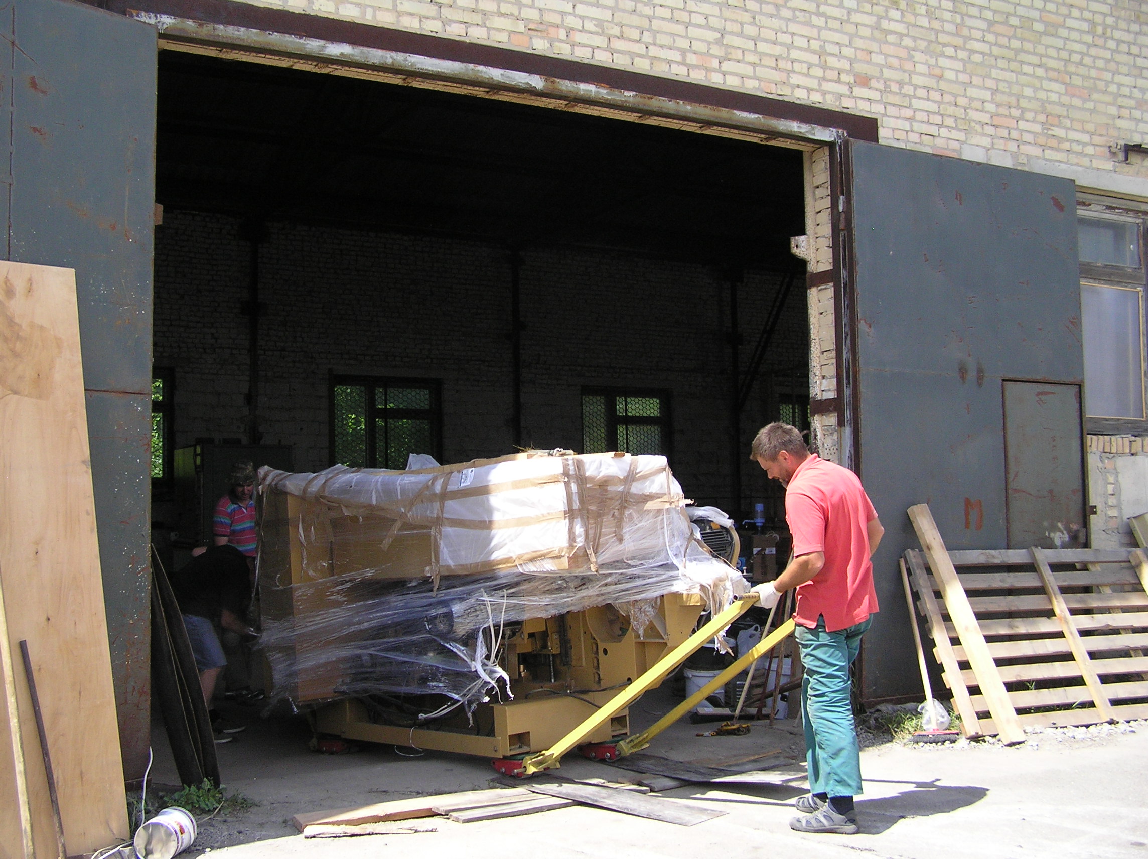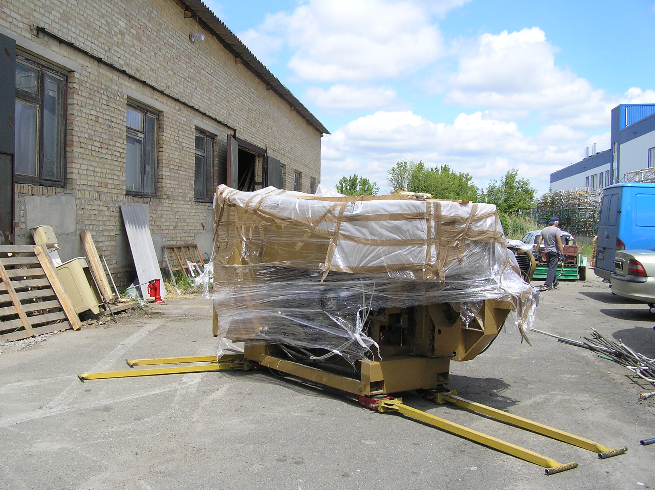 Три деревообрабатывающих станка весом около трех тонн каждый, цех возле г.Бровары. Первый станок манипулятор выгрузил в цеху, но экспозиция поменялась и его предстояло развернуть на месте на 180 градусов. Это мы сделали сразу, в виде разминки, чтобы мышцы прогреть. По ходу выяснили, что полы – асфальтные и под ними кроме земли нет ничего.
