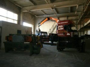 Ширины ворот нового цеха оказалось достаточно, чтобы водитель смог почти полностью заехать вовнутрь. Благодаря этому, за три ходки удалось перевезти все грузы в новый цех и расставить их там. Выражаем искреннюю благодарность водителю манипулятора за мастерство в работе.