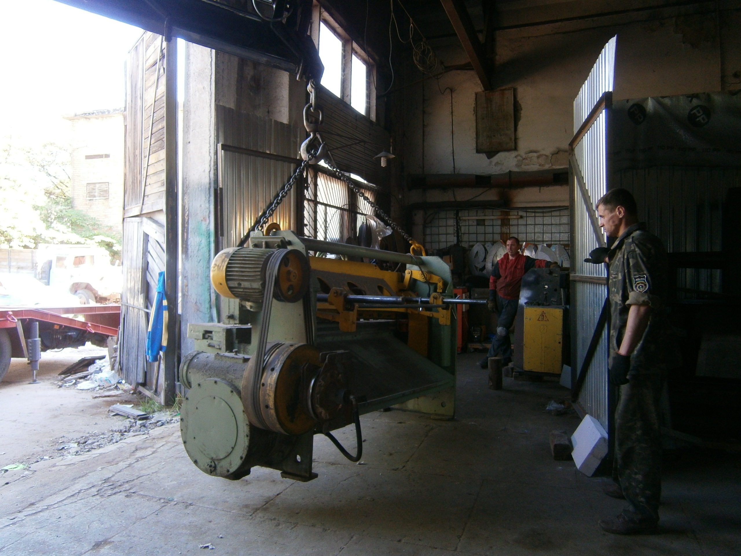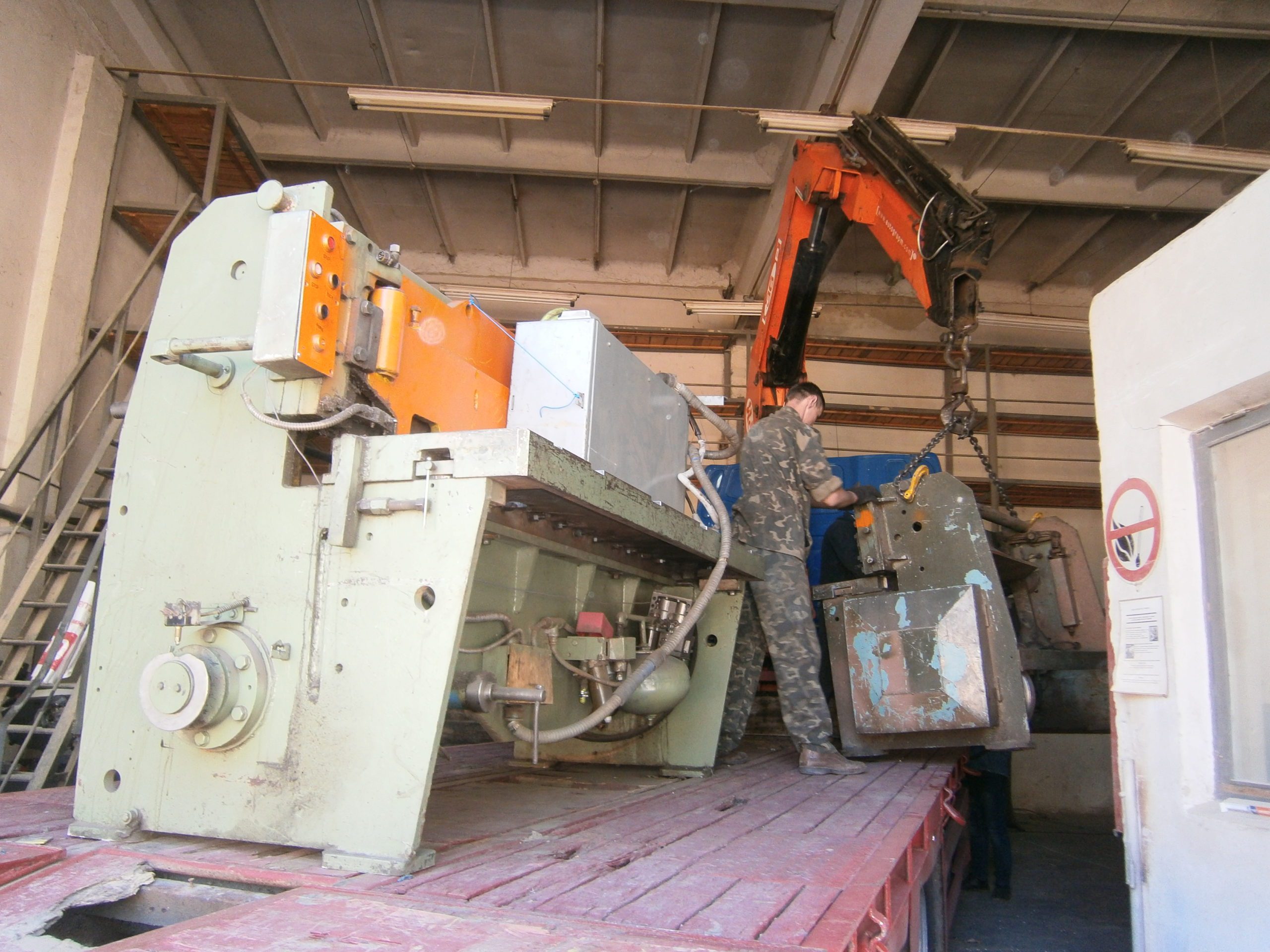 Предприятие наметило переехать в соседний цех и доверило нам перевозку своих самых тяжелых станков. В список вошли: гильотина весом 6 тонн, тоже гильотина, но поменьше, тонны 3 и трое вальцов, весом до тонны каждые. Вся эта красота стояла довольно тесно друг к другу в производственном цеху и ждала проведения такелажных работ. Ворота, через которые предстояло вывозить станки были недалеко, под потолком жила действующая кран-балка — прогнозы благоприятствовали.
