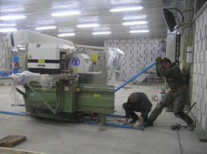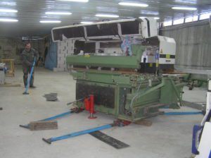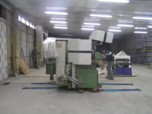 Станок был выгружен заказчиком внутри цеха. Перемещение механизма по цеху к месту постоянной установки заказчик решил доверить специалистам компании БлокМастер, и не ошибся. После перетаскивания, станок был выставлен по уровню на подушках с помощью регулировочных болтов. По окончании работ и заказчик, и специалисты компании БлокМастер остались довольны друг другом.