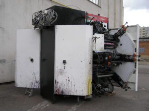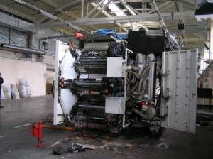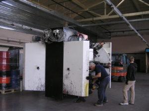 Печатное производство целиком переезжало из Киева в Днепропетровск. Линия состояла из печатной машины весом 8 т и нескольких агрегатов весом 1- 2т. Нам предстояло выкатить печатную машину из цеха на улицу и вместе с остальными агрегатами загрузить в кузов фуры. Полы в цеху были идеально ровными, тянуть машину по цеху помогал вилочный погрузчик. Сбросить скорость пришлось на выезде из цеха, так как имелся уклон и выбоины на асфальте. На спуске груз ускорялся сам, так что пришлось его даже придерживать. Но опасный участок был благополучно преодолен и дальнейший путь по асфальту прошел без осложнений.