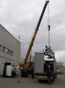 Процесс шел медленно и уверенно. Во все проушины были вставлены грузоподъемные скобы, за которые закреплялись крюки паука. Грузы были заранее распределены по кузову фуры в соответствии с собственным весом. Кран брал указанный груз и ставил в машину. Брал и ставил, брал и ставил… Наконец фура была заполнена до отказа и водитель начал крепить груз. Нас поблагодарили за работу и пожелали успехов. Заказчик оставил о себе наилучшее впечатление.