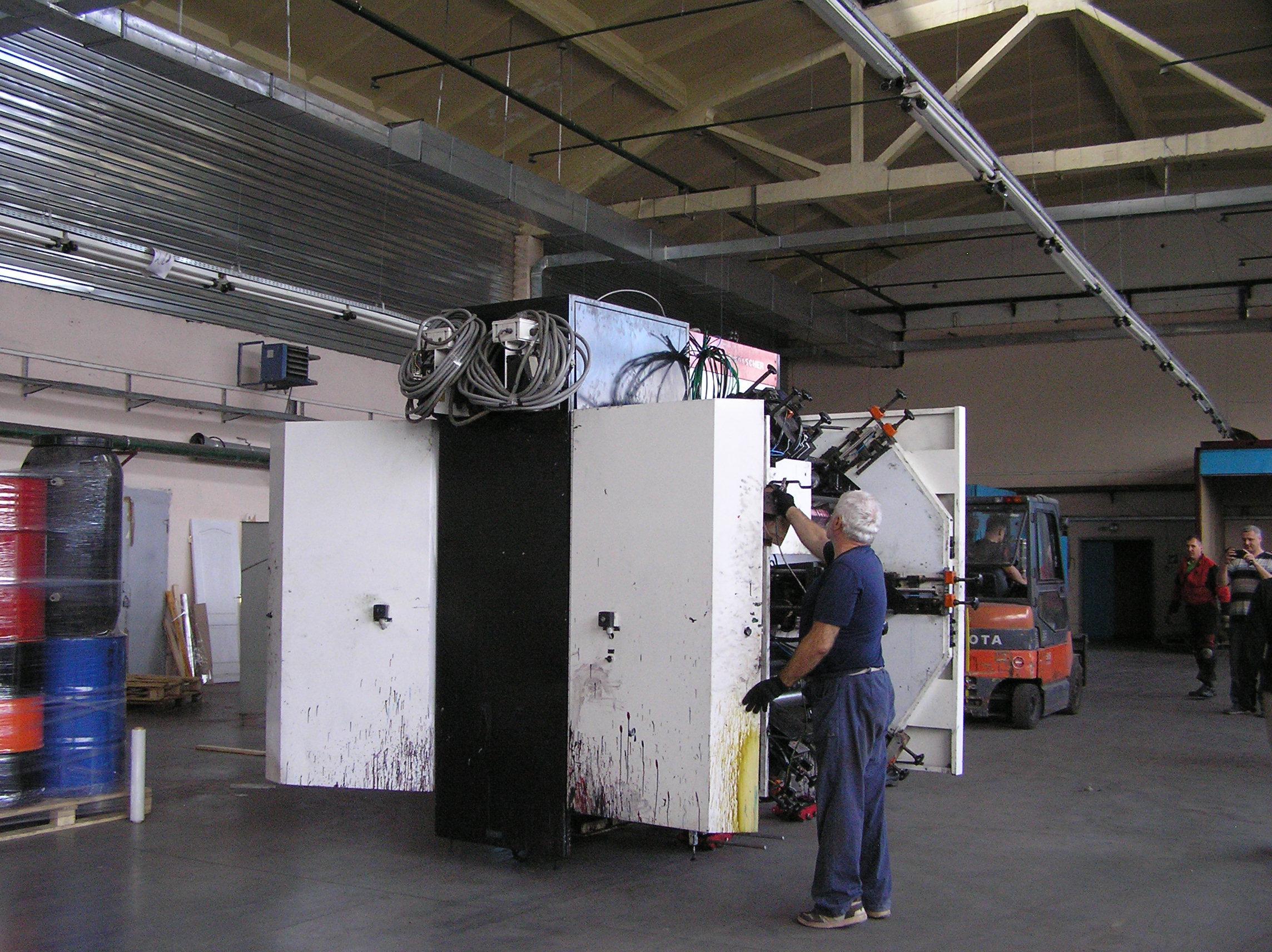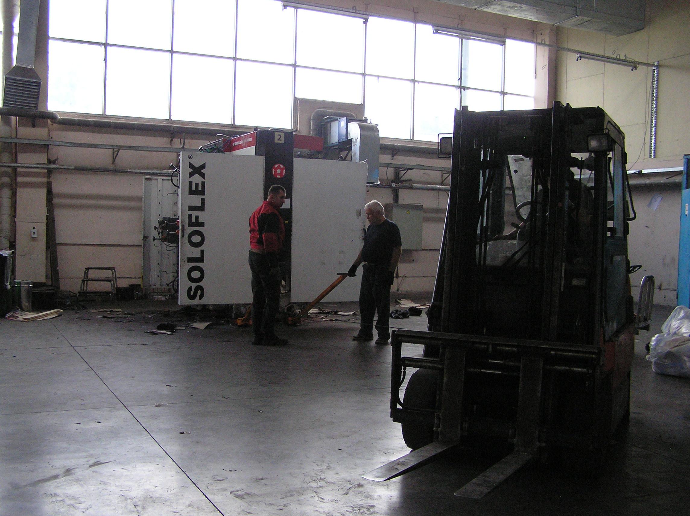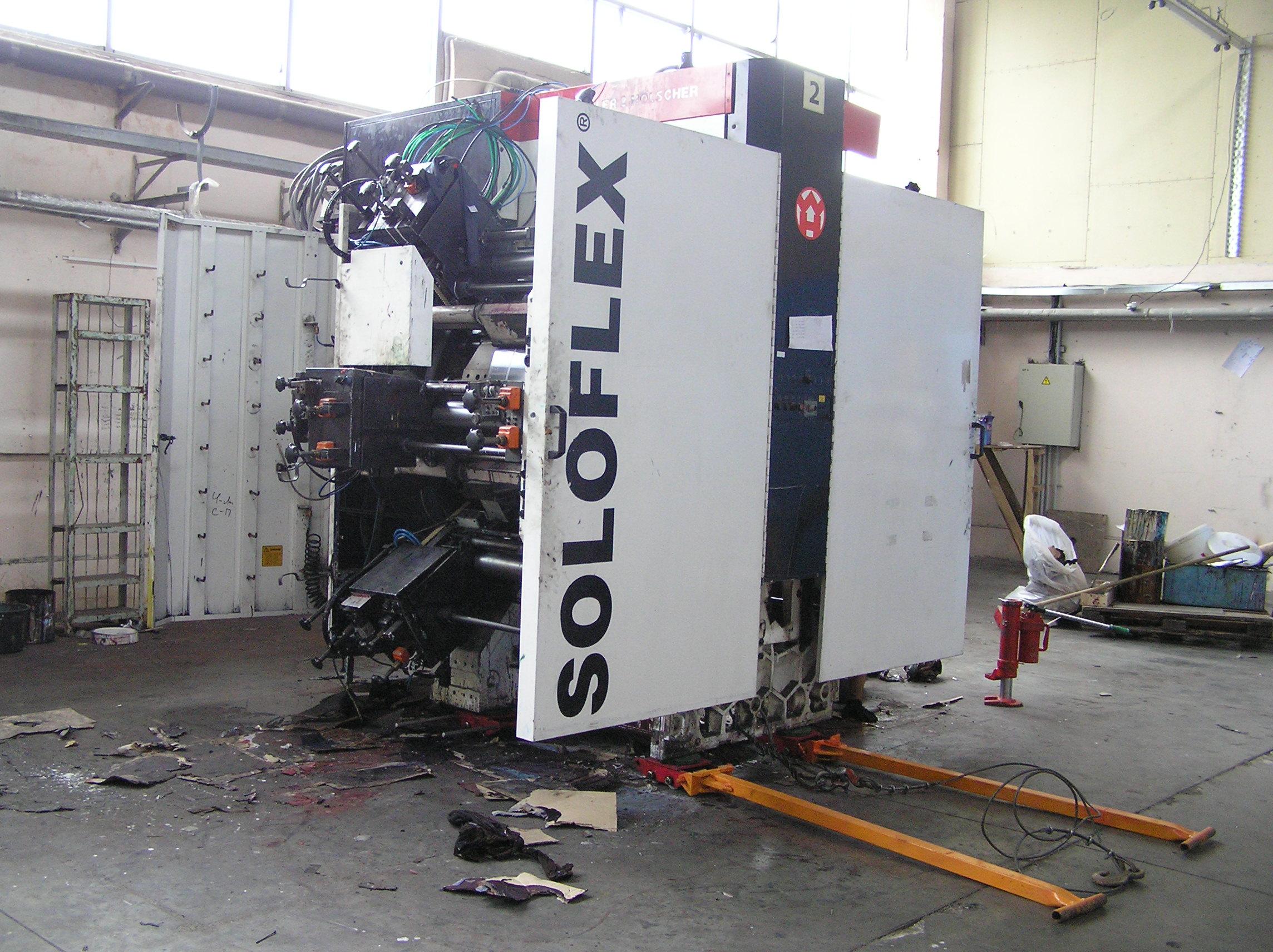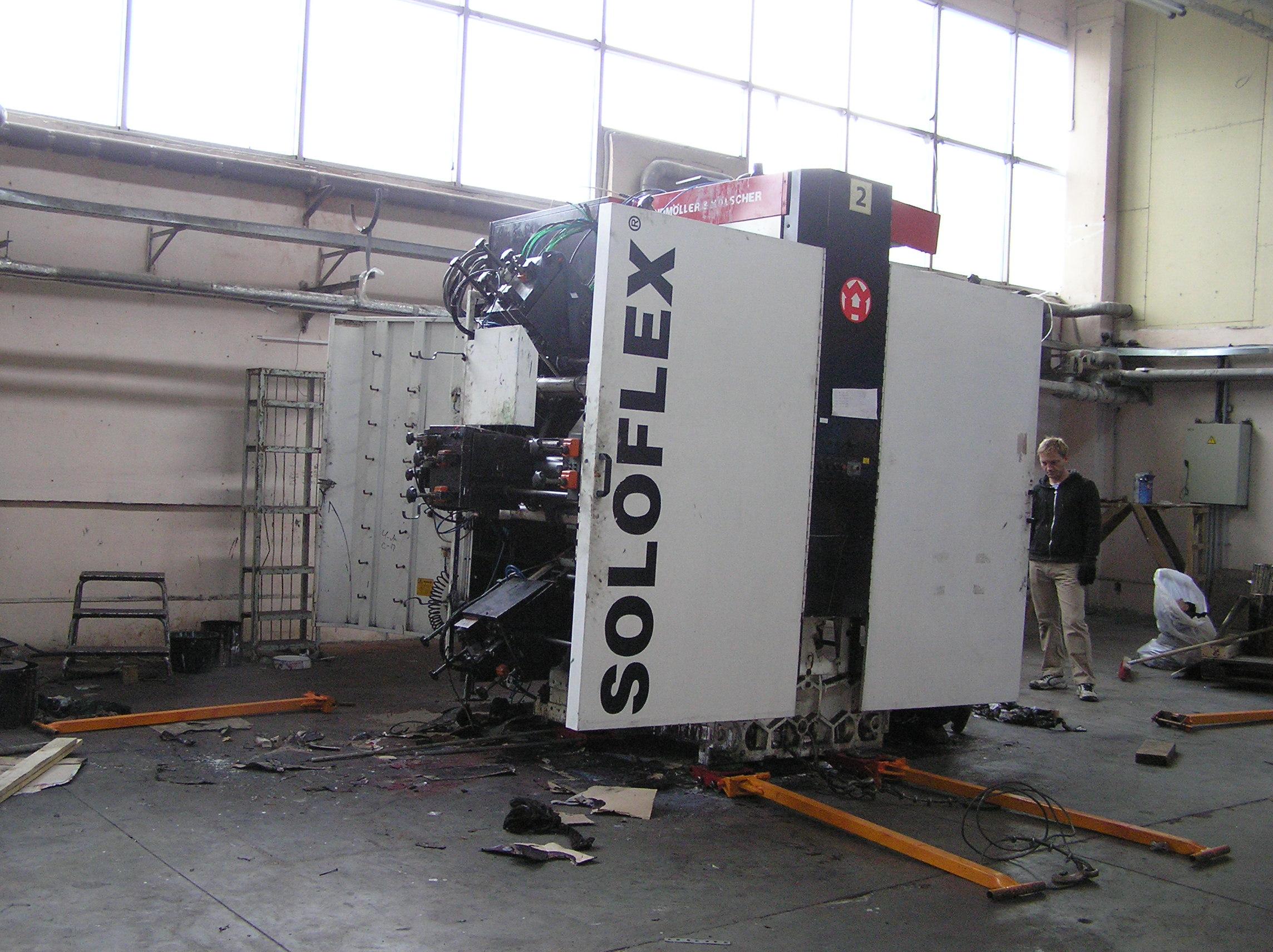 Печатное производство целиком переезжало из Киева в Днепропетровск. Линия состояла из печатной машины весом 8 т и нескольких агрегатов весом 1- 2т. Нам предстояло выкатить печатную машину из цеха на улицу и вместе с остальными агрегатами загрузить в кузов фуры. Полы в цеху были идеально ровными, тянуть машину по цеху помогал вилочный погрузчик. Сбросить скорость пришлось на выезде из цеха, так как имелся уклон и выбоины на асфальте. На спуске груз ускорялся сам, так что пришлось его даже придерживать. Но опасный участок был благополучно преодолен и дальнейший путь по асфальту прошел без осложнений.