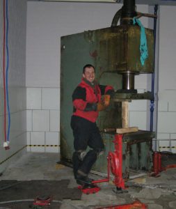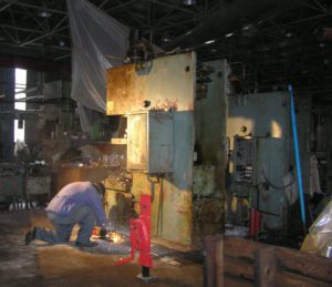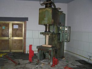 Пресс весом около семи тонн тихо стоял в огромном, неосвещенном цеху. Было тихо, с крыши капало, под ногами стояли лужи- перспектив не было. Жизнь прошла стороной. В воздухе витало слово: Металлолом. Таким мы увидели нашего претендента.