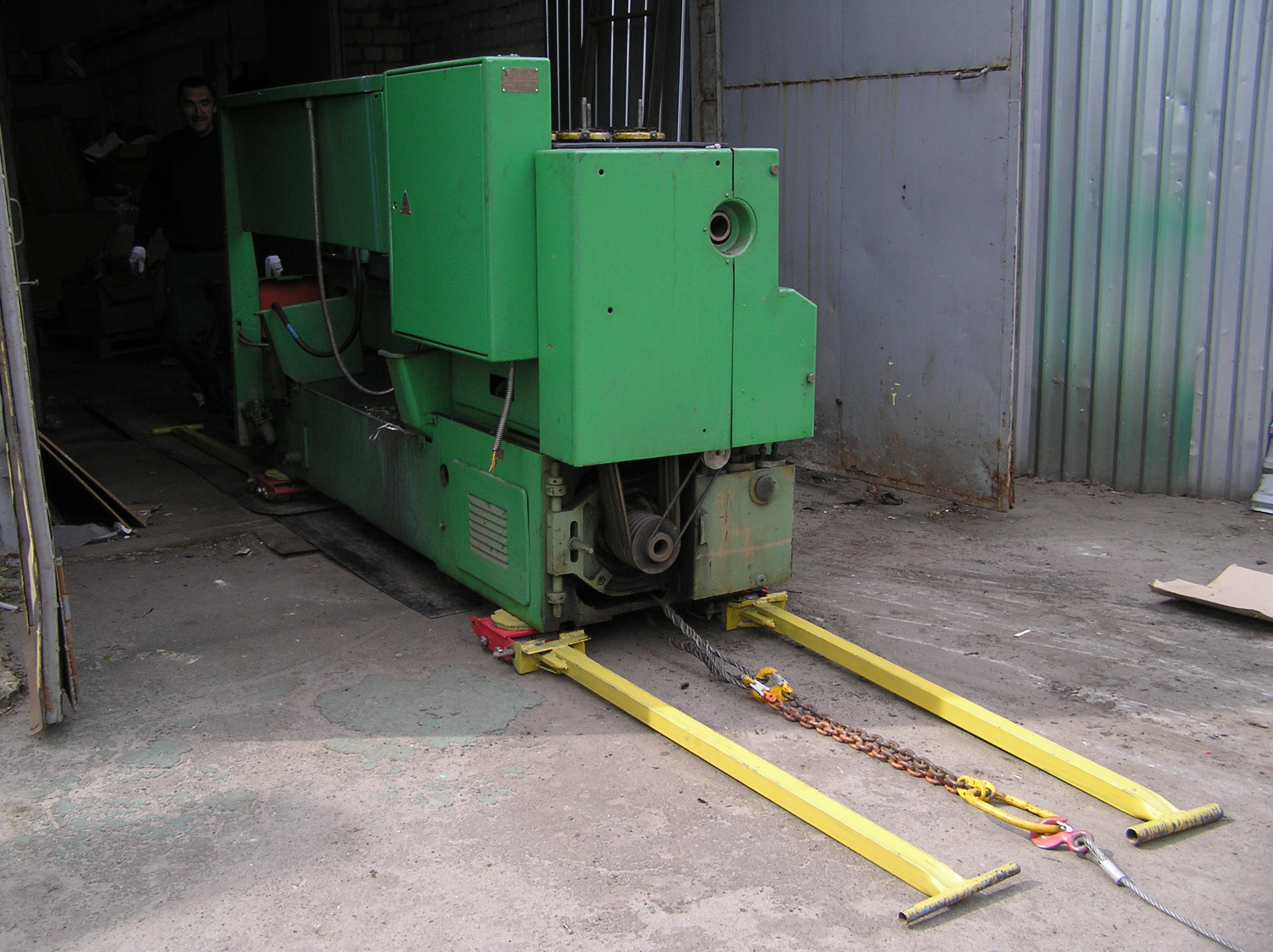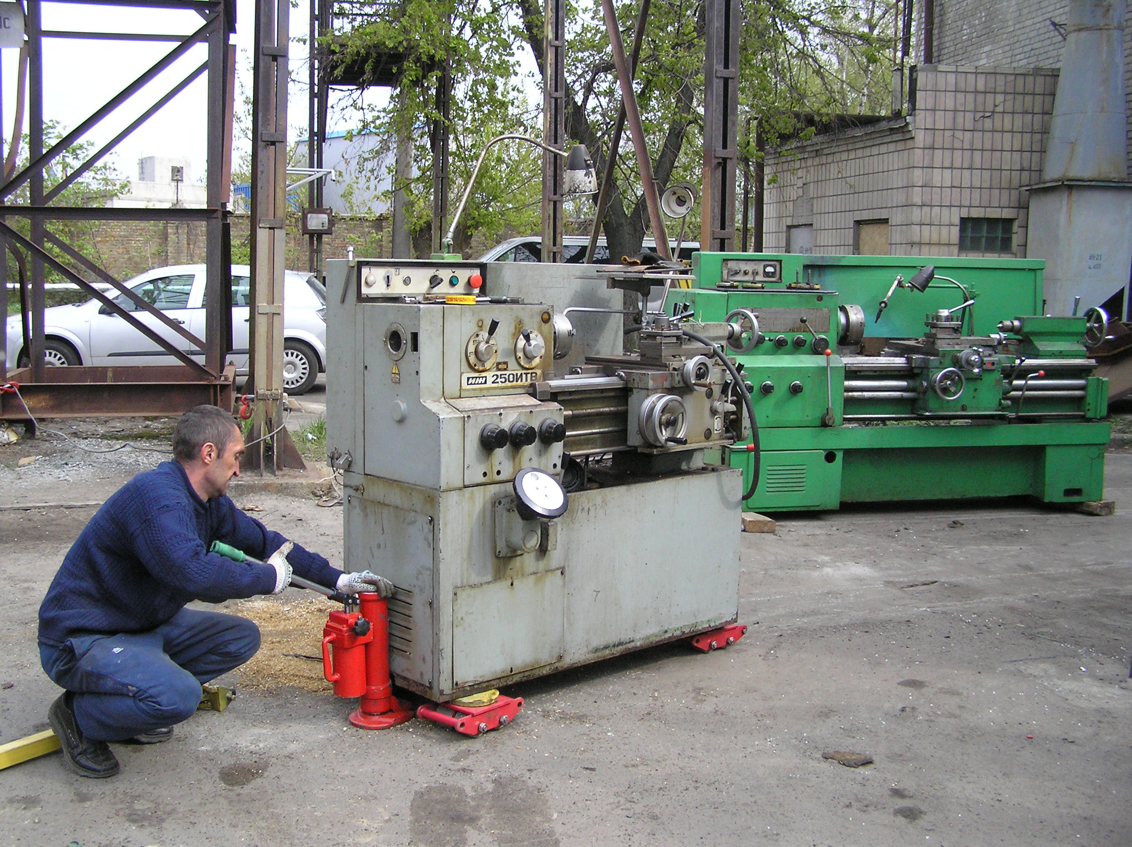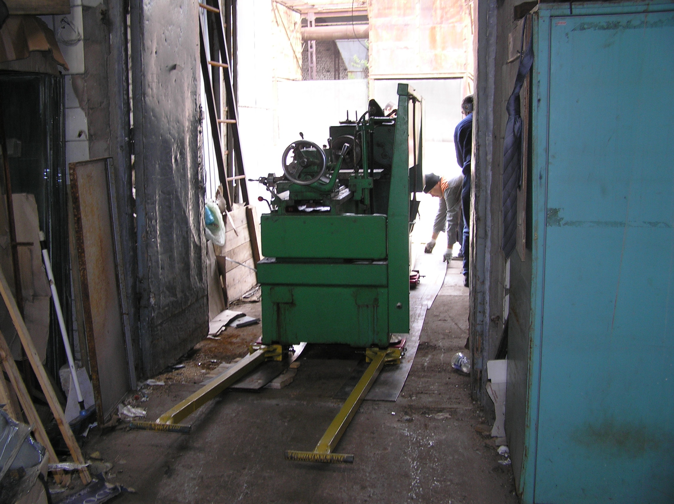 Перемещение токарных станков 2 и 5 тонн из цеха на улицу.