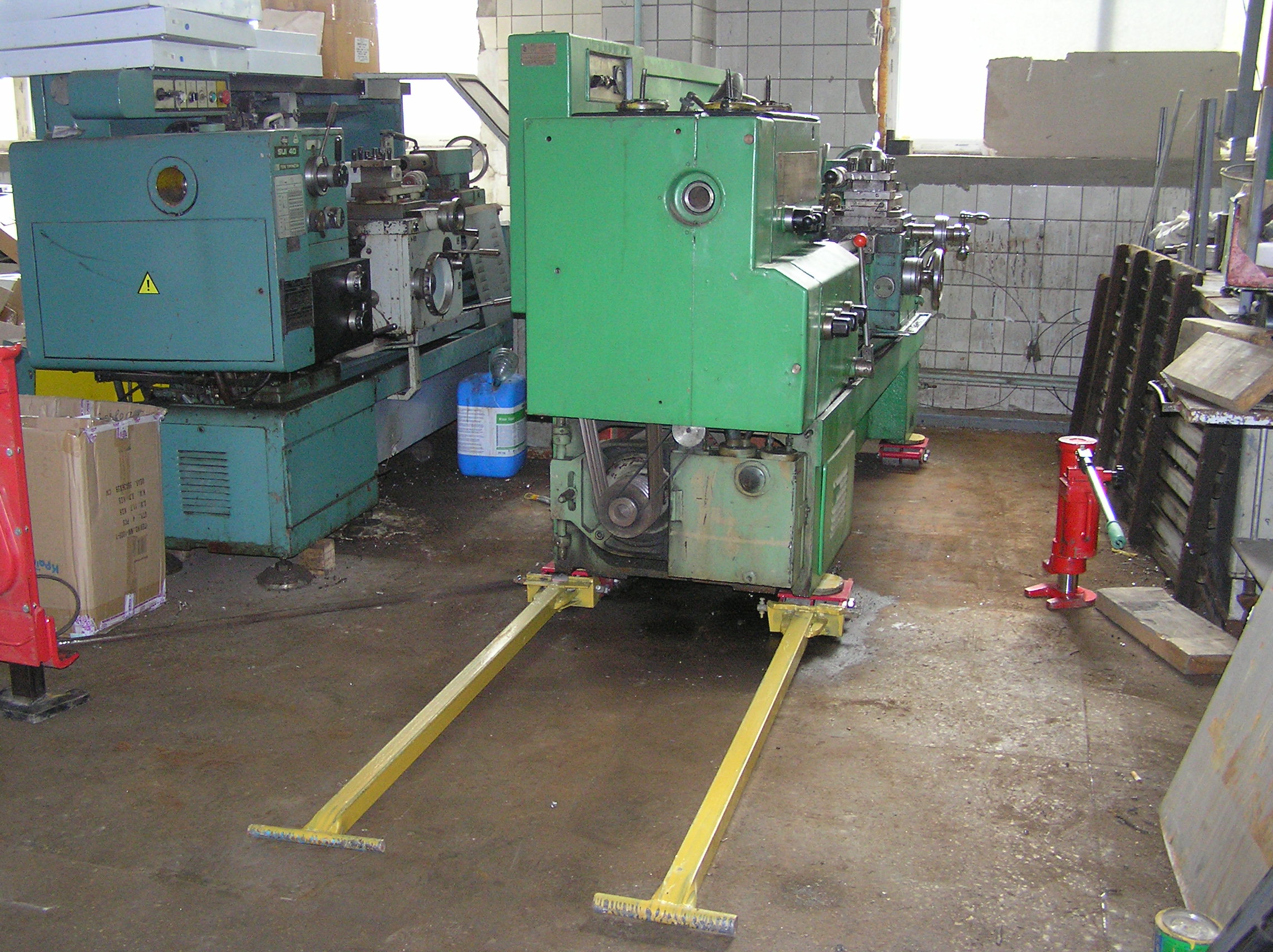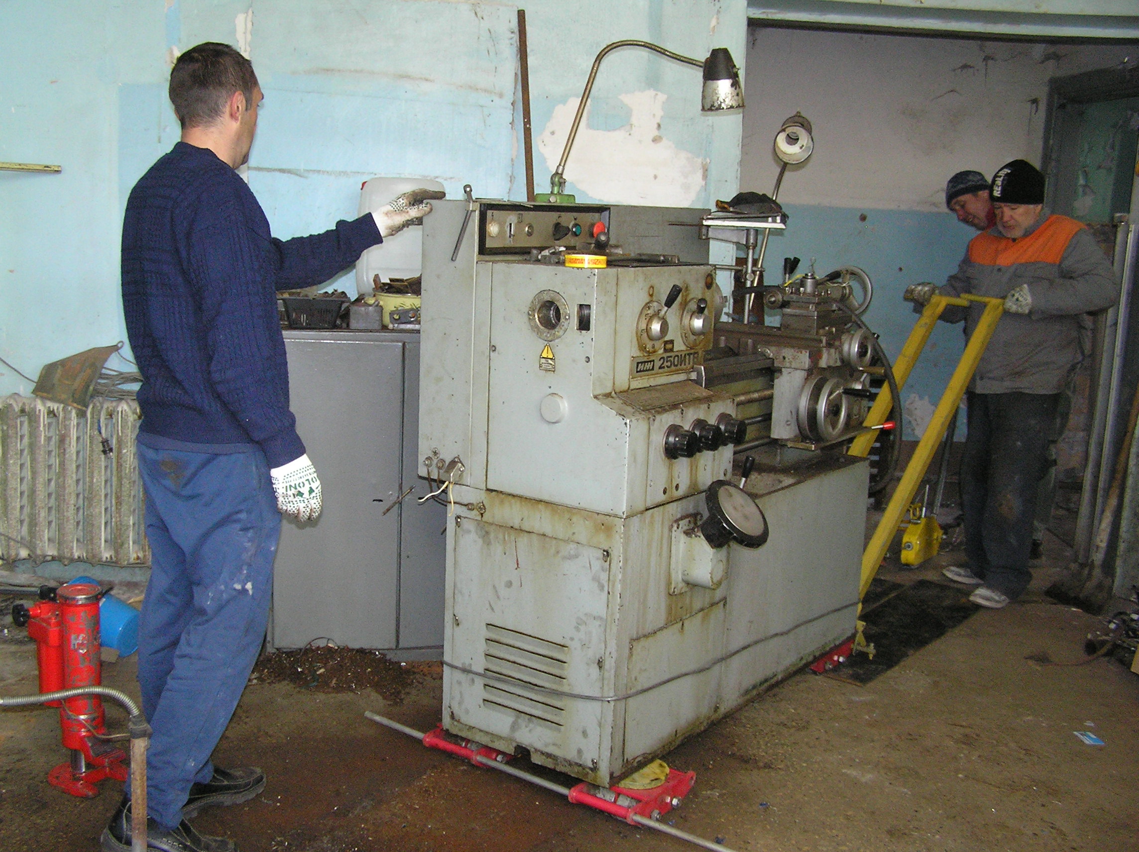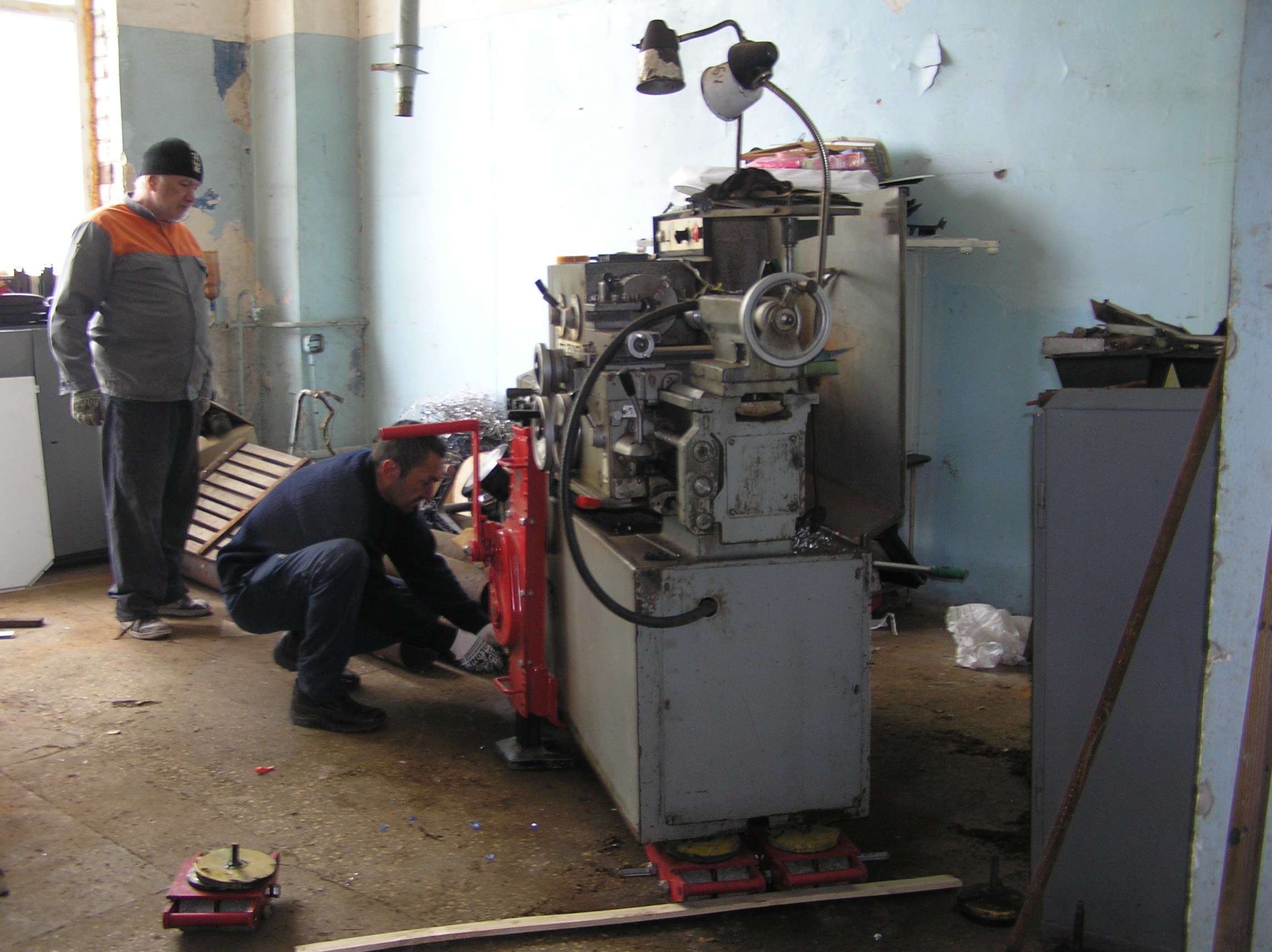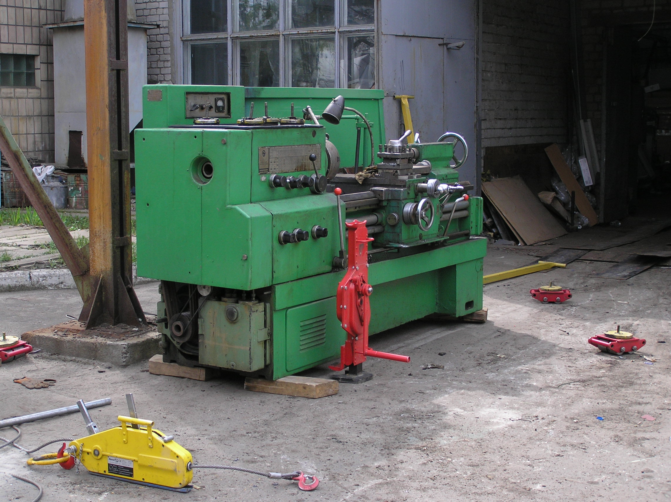 Перемещение токарных станков 2 и 5 тонн из цеха на улицу.