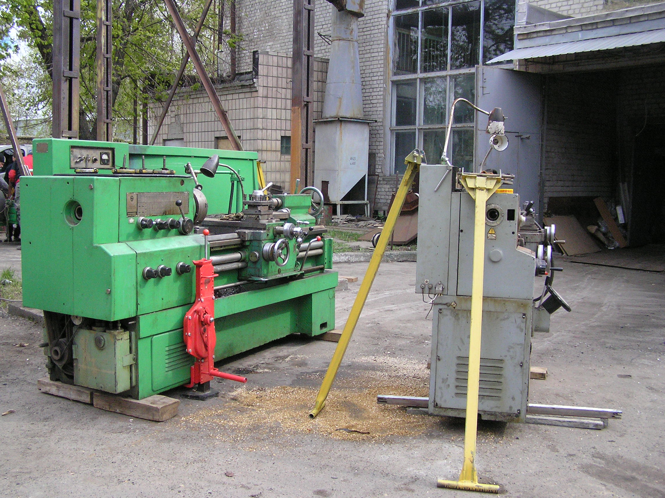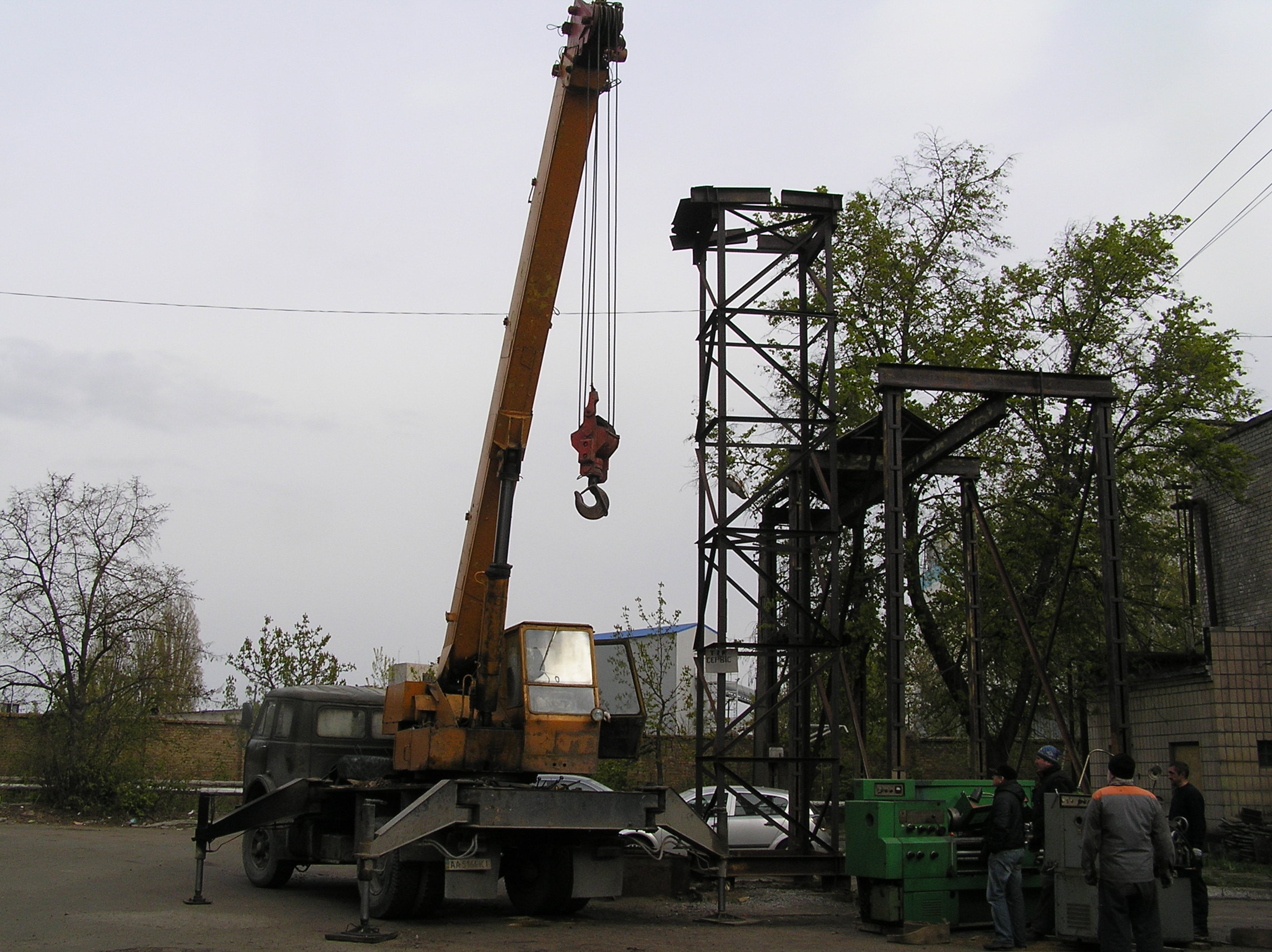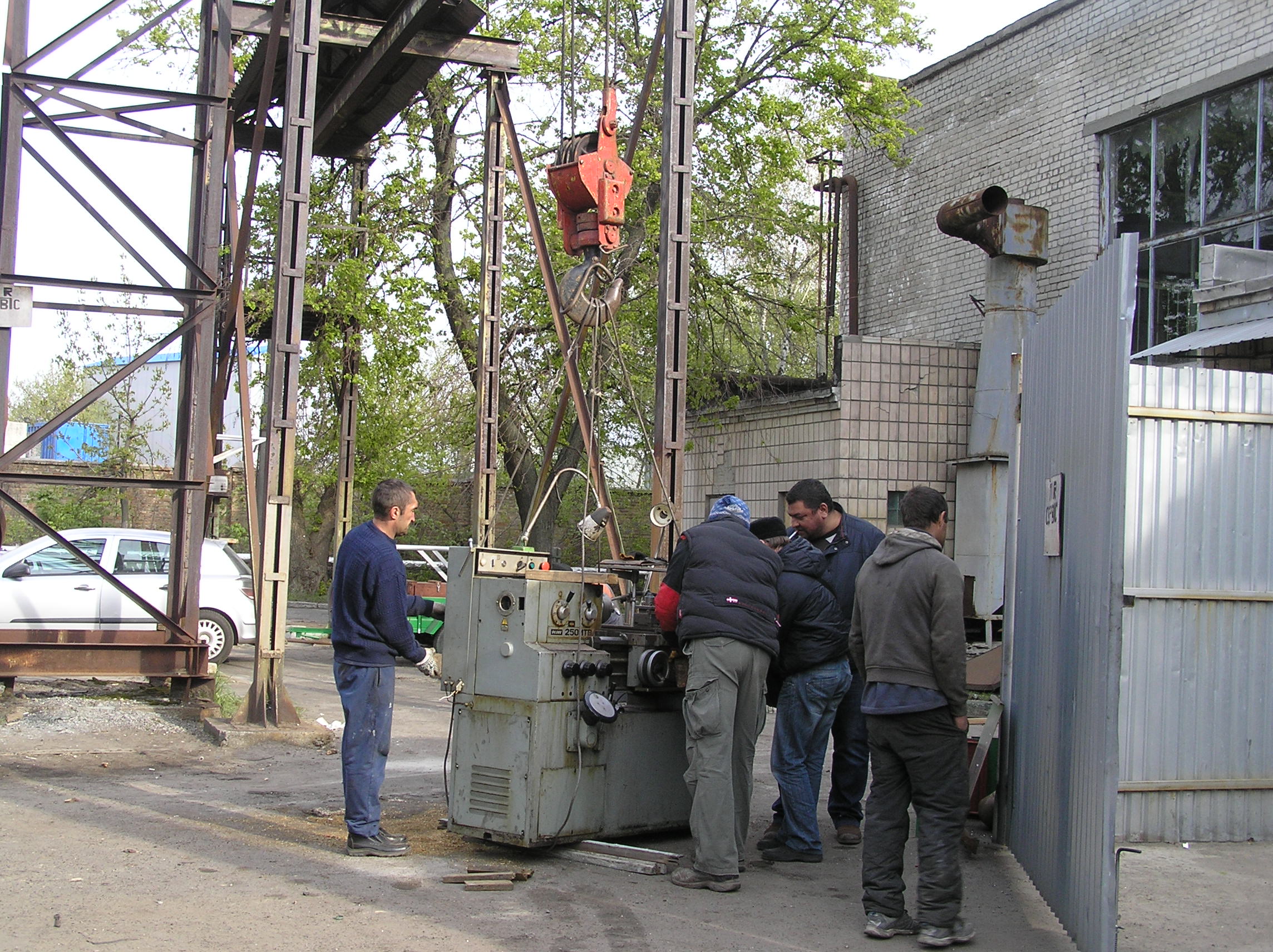 Место проведения такелажных работ — территория киевского радиозавода на ул. Бориспольской. Главные действующие лица — два токарных станка, по легенде, уезжающие в Днепр для проведения ТО, исполнители — такелажники компании «Блокмастер» с их замечательными инструментами.