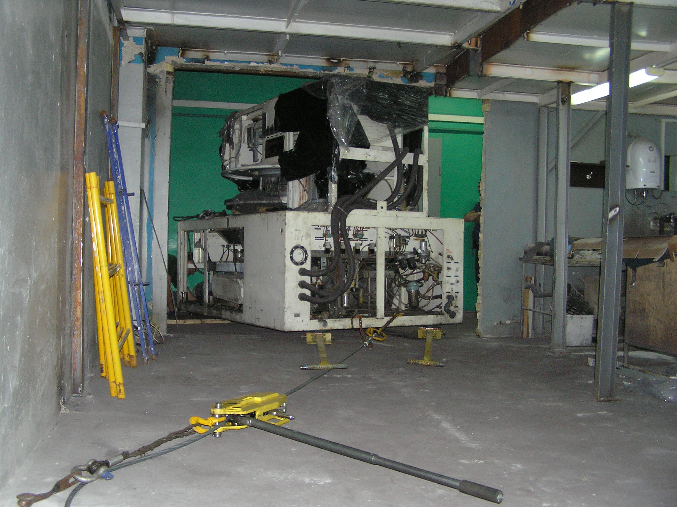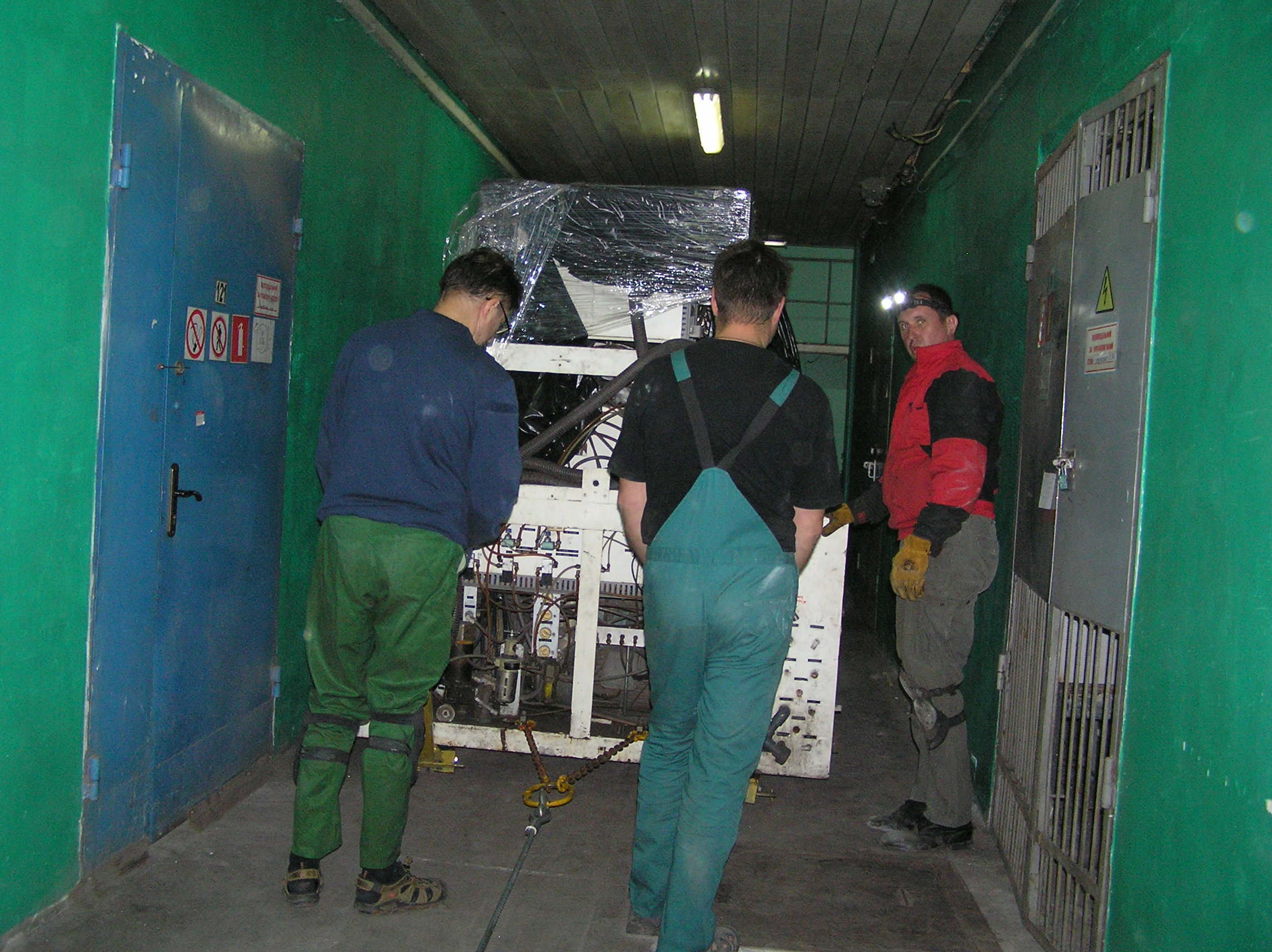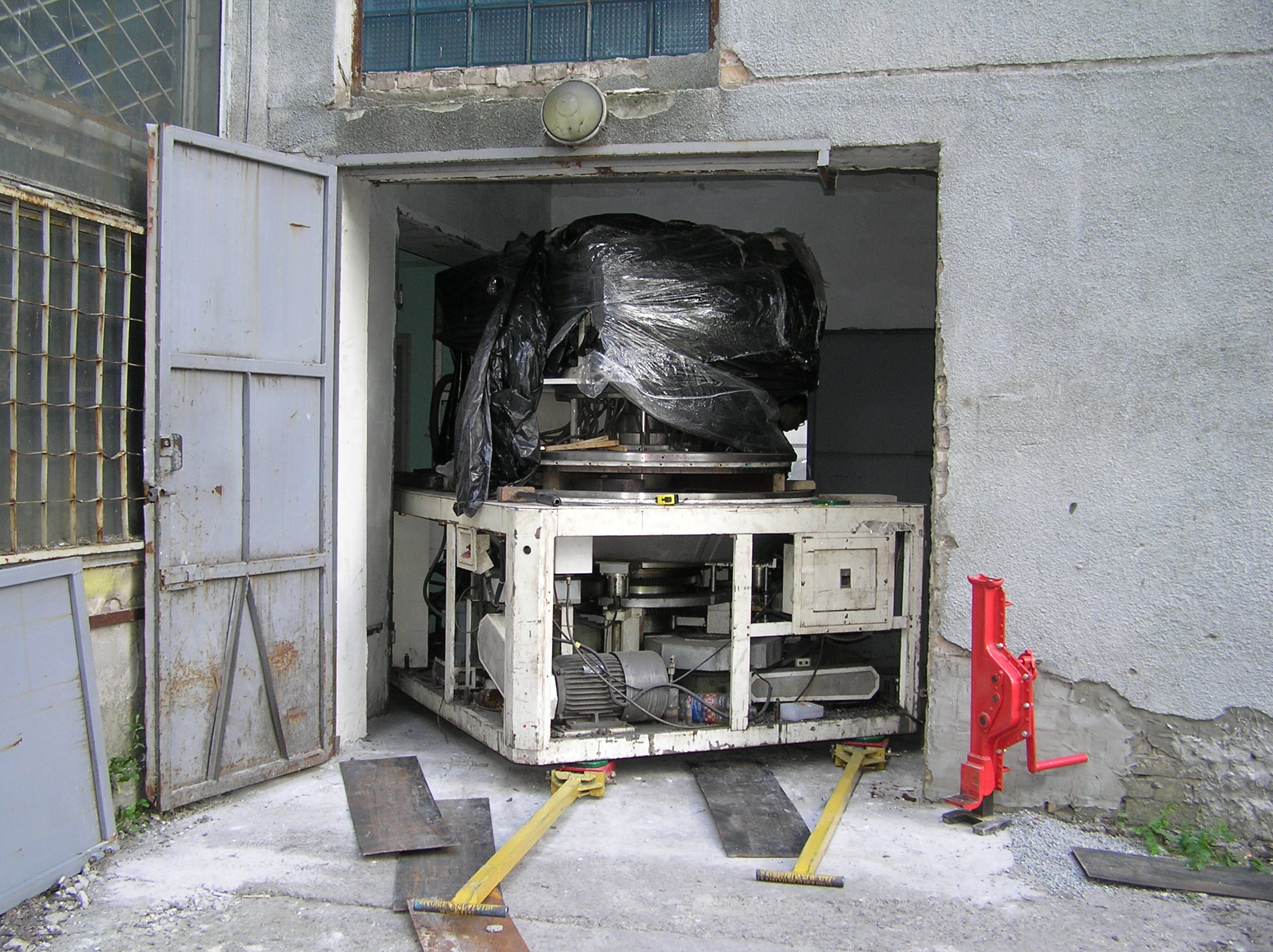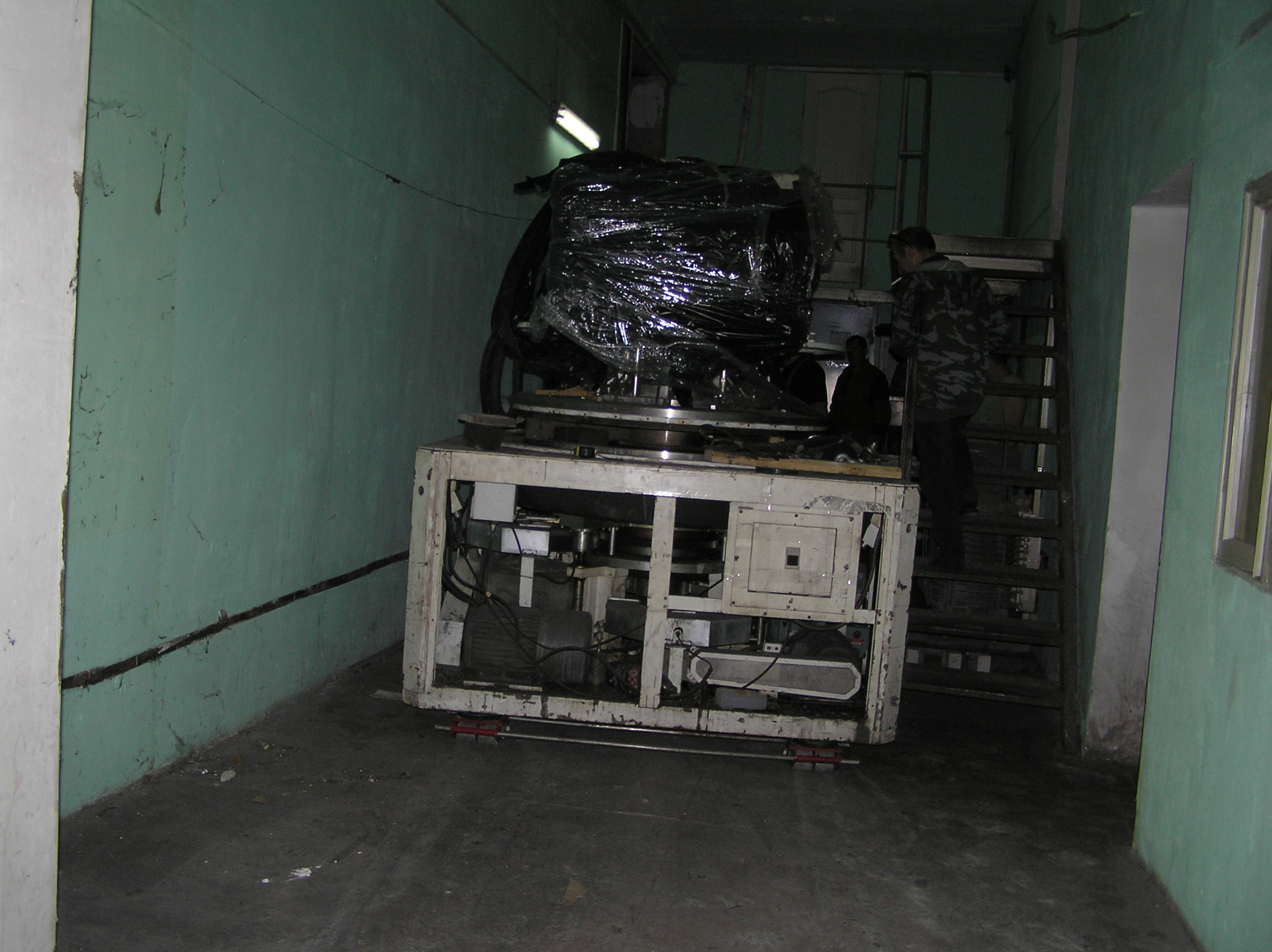 Груз размерами 2*3*2 м предстояло закатить с улицы в коридор и прокатить по нему около 50 м. Затем повернуть в проем в стене, и заехать на место установки. По дороге предстояло каким-то образом преодолеть пять люков в полу, на которые и наехать нельзя, и объехать их тоже нельзя. Задачка нам понравилось, и мы за работу взялись.