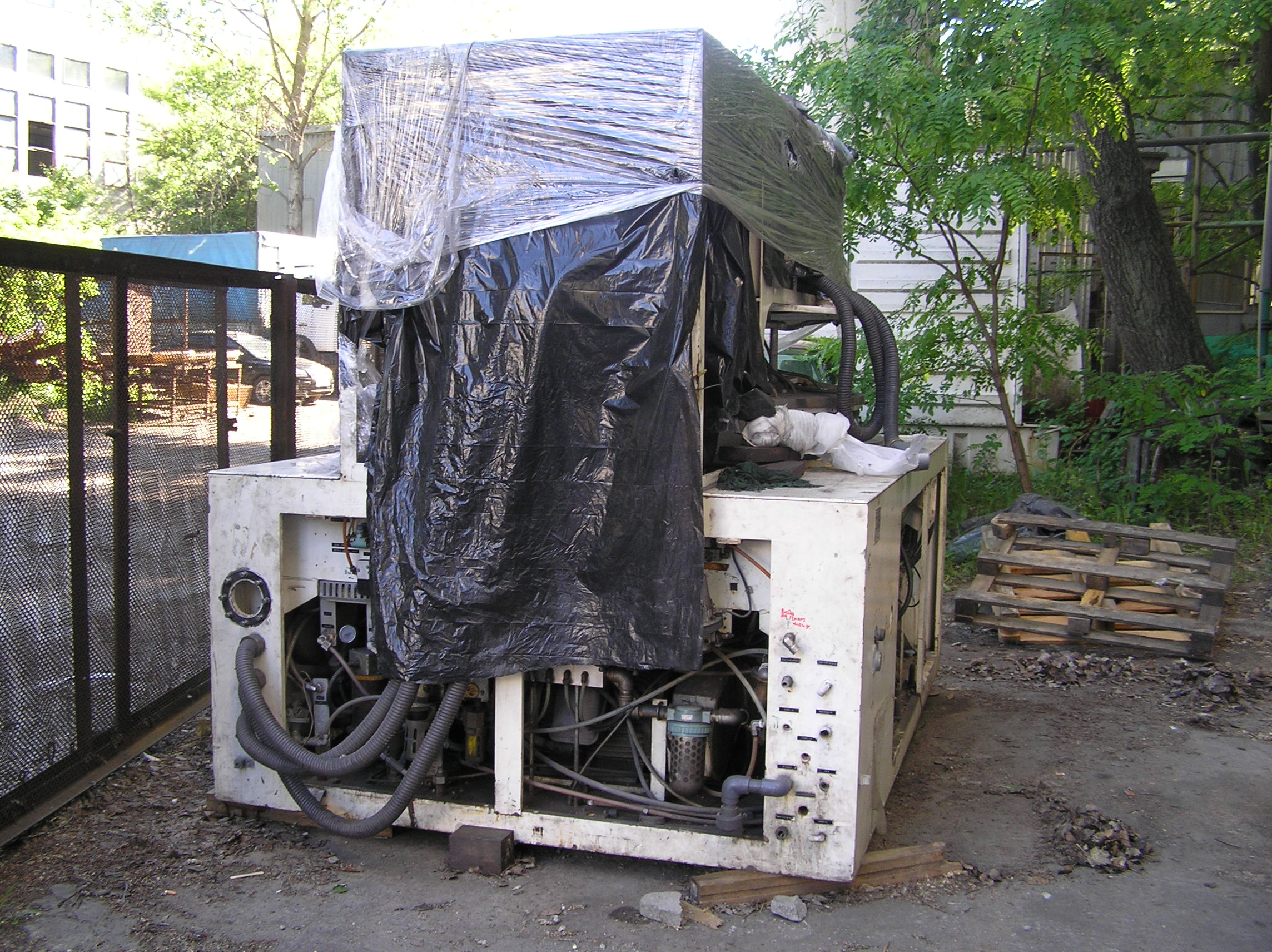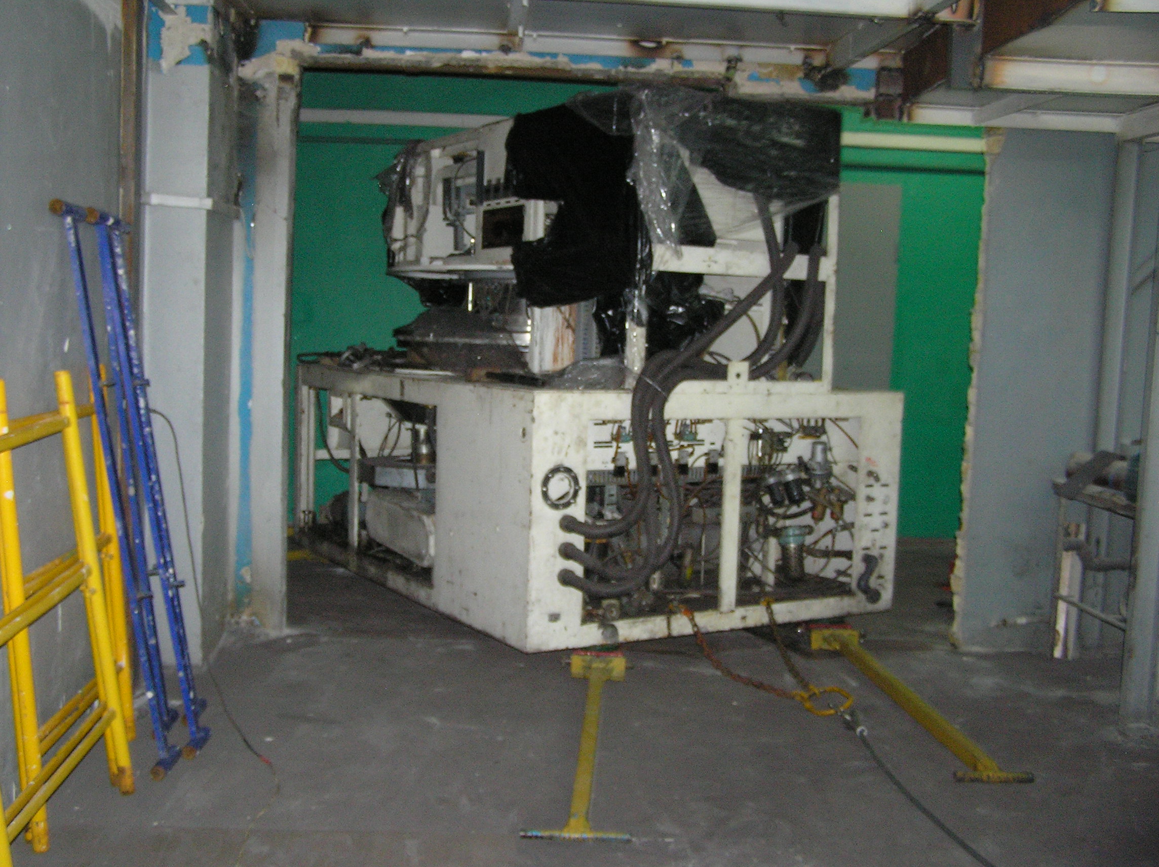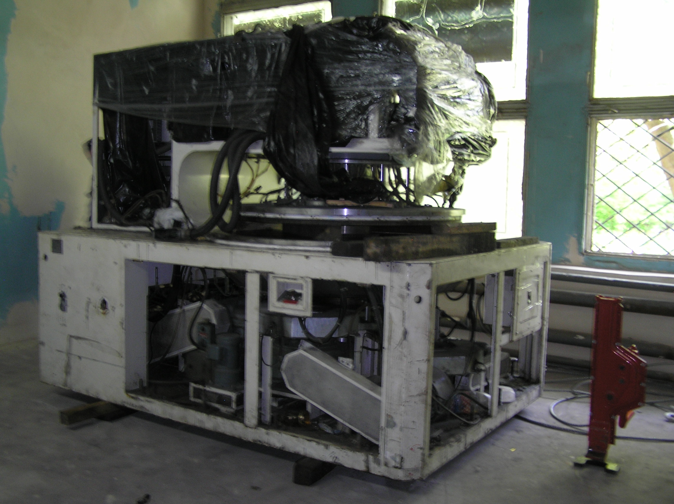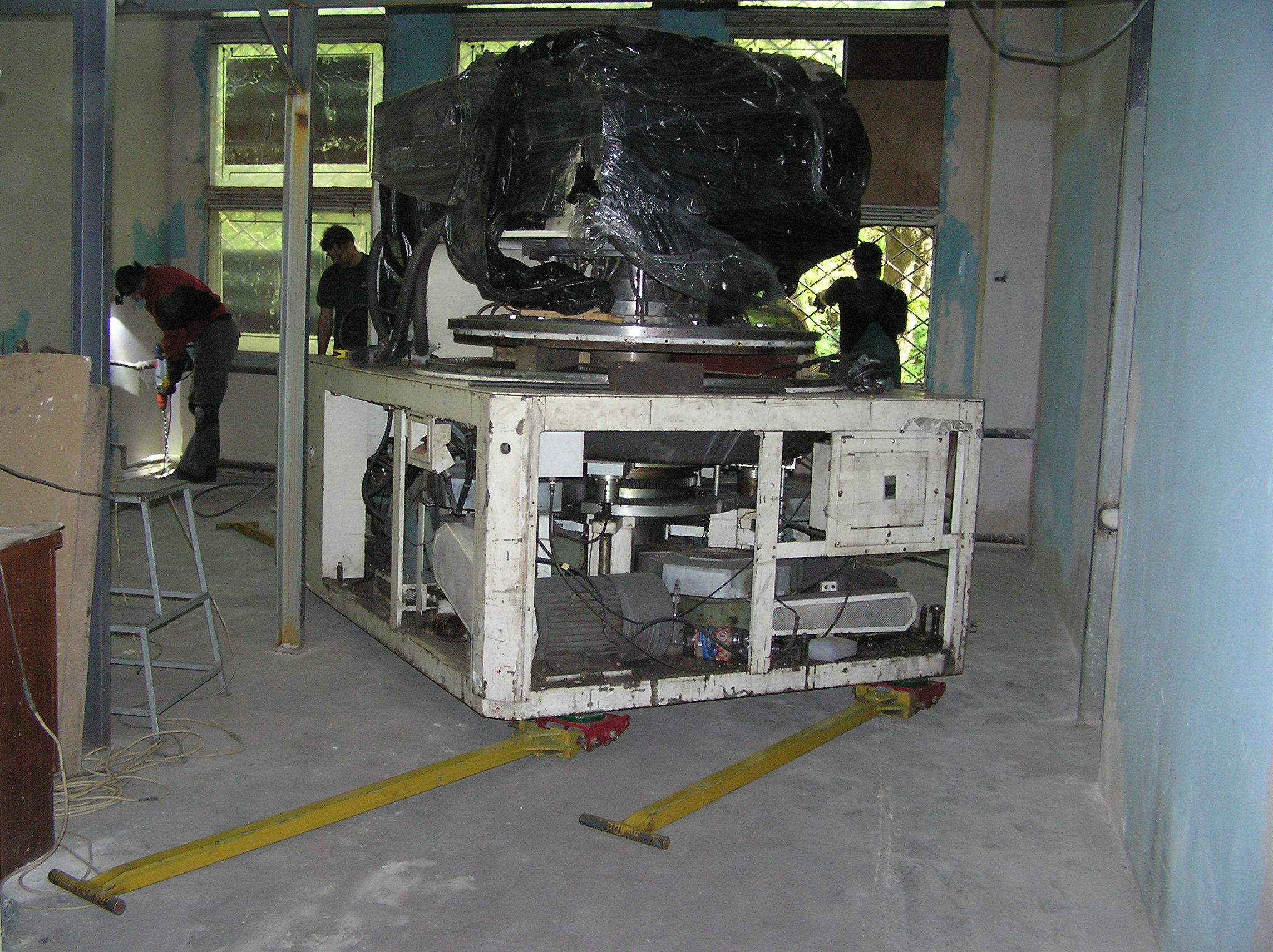 Груз размерами 2*3*2 м предстояло закатить с улицы в коридор и прокатить по нему около 50 м. Затем повернуть в проем в стене, и заехать на место установки. По дороге предстояло каким-то образом преодолеть пять люков в полу, на которые и наехать нельзя, и объехать их тоже нельзя. Задачка нам понравилось, и мы за работу взялись.