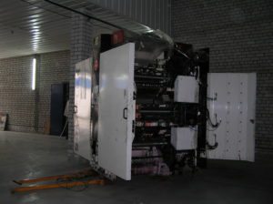 После разгрузки мы приступили к основной задаче. Восьмитонная печатная «машинка» с помощью домкратов была установлена на транспортные тележки и по стальным листам двинулась в цех. После окончательной установки на ПМЖ машина была поставлена на стальные подкладки. Пока мы катили машину, погрузчик успел занести в цех оставшиеся грузы. Вслед за этим были установлены на свое место ворота цеха. Небо хмурилось, время близилось к вечеру – никого не надо было подгонять. Выражаем благодарность заказчику за содействие и правильную организацию работ и искренне сожалеем, что ему пришлось уехать из Киева.
