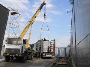 По приезду металлообрабатывающий центр был снят с катков и установлен на предусмотренные конструкцией опорные башмаки.