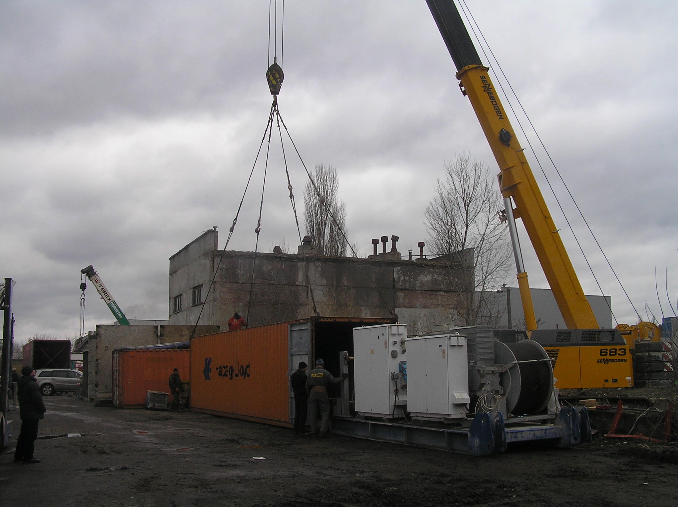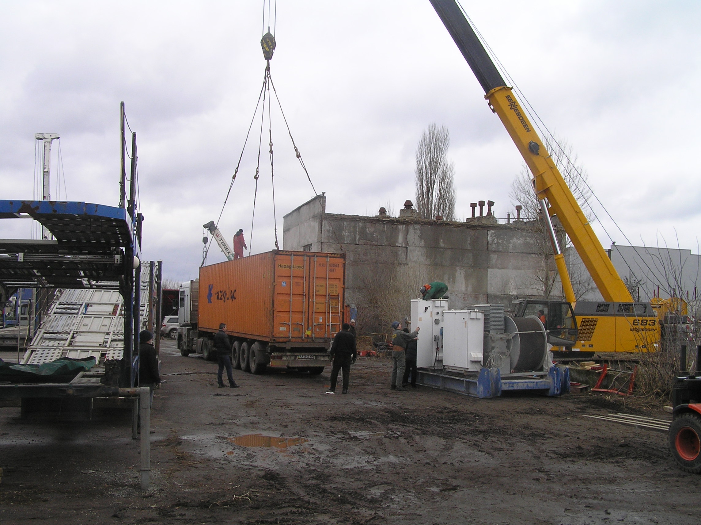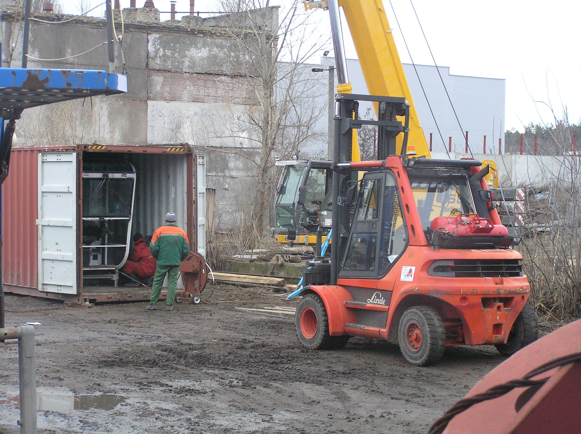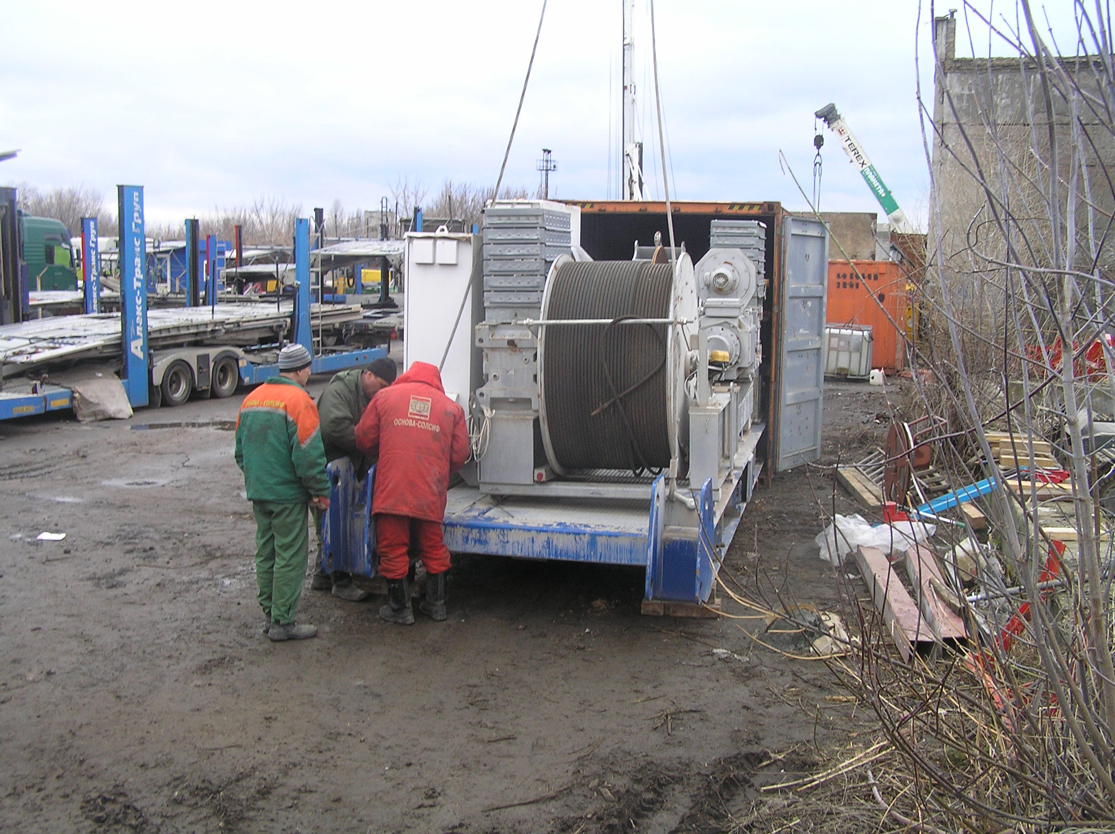 Обе конструкции предстояло запихать в контейнер для последующей отправки в порт. Зазор между грузом и стенками контейнеров составлял около 2-х см., что при длине груза 6 м. и большой массе сильно осложняло задачу. Но слаженная работа обоих коллективов и помощь могучего самоходного крана и погрузчика позволила выполнить такелажные работы в достаточно сжатые сроки.