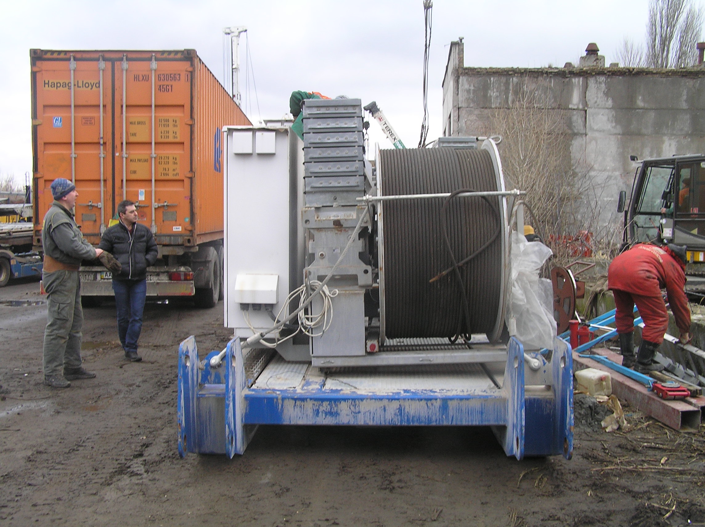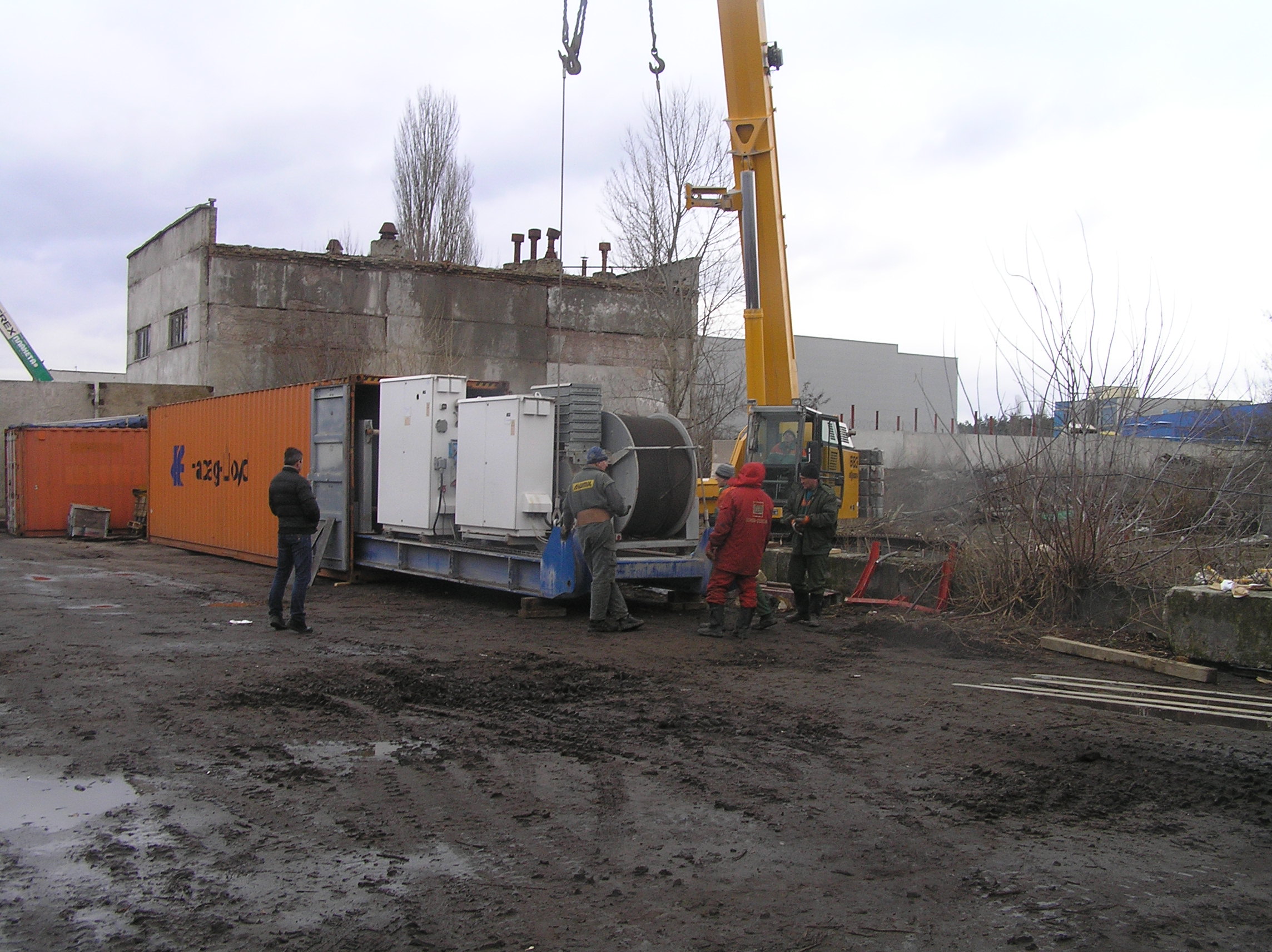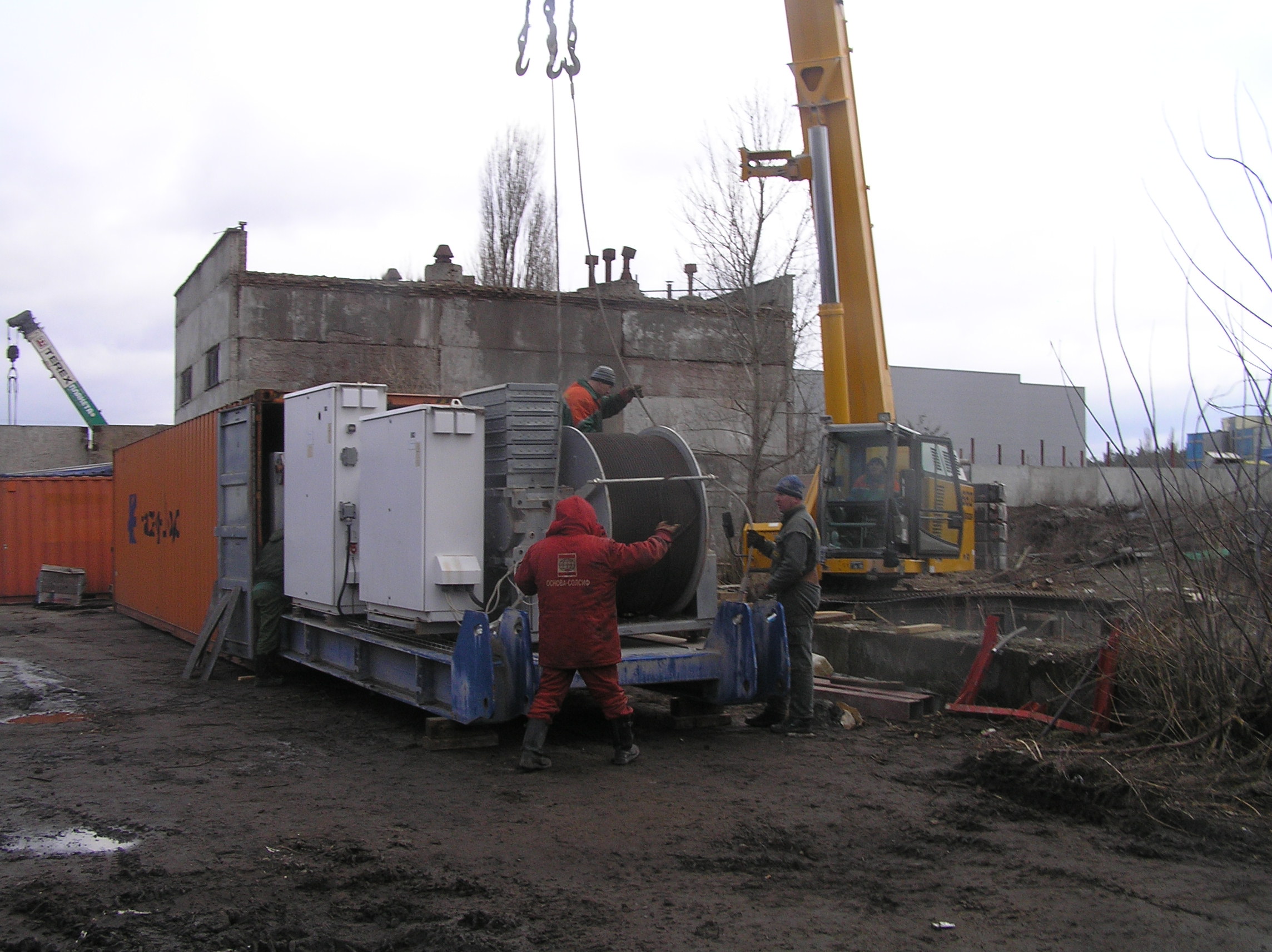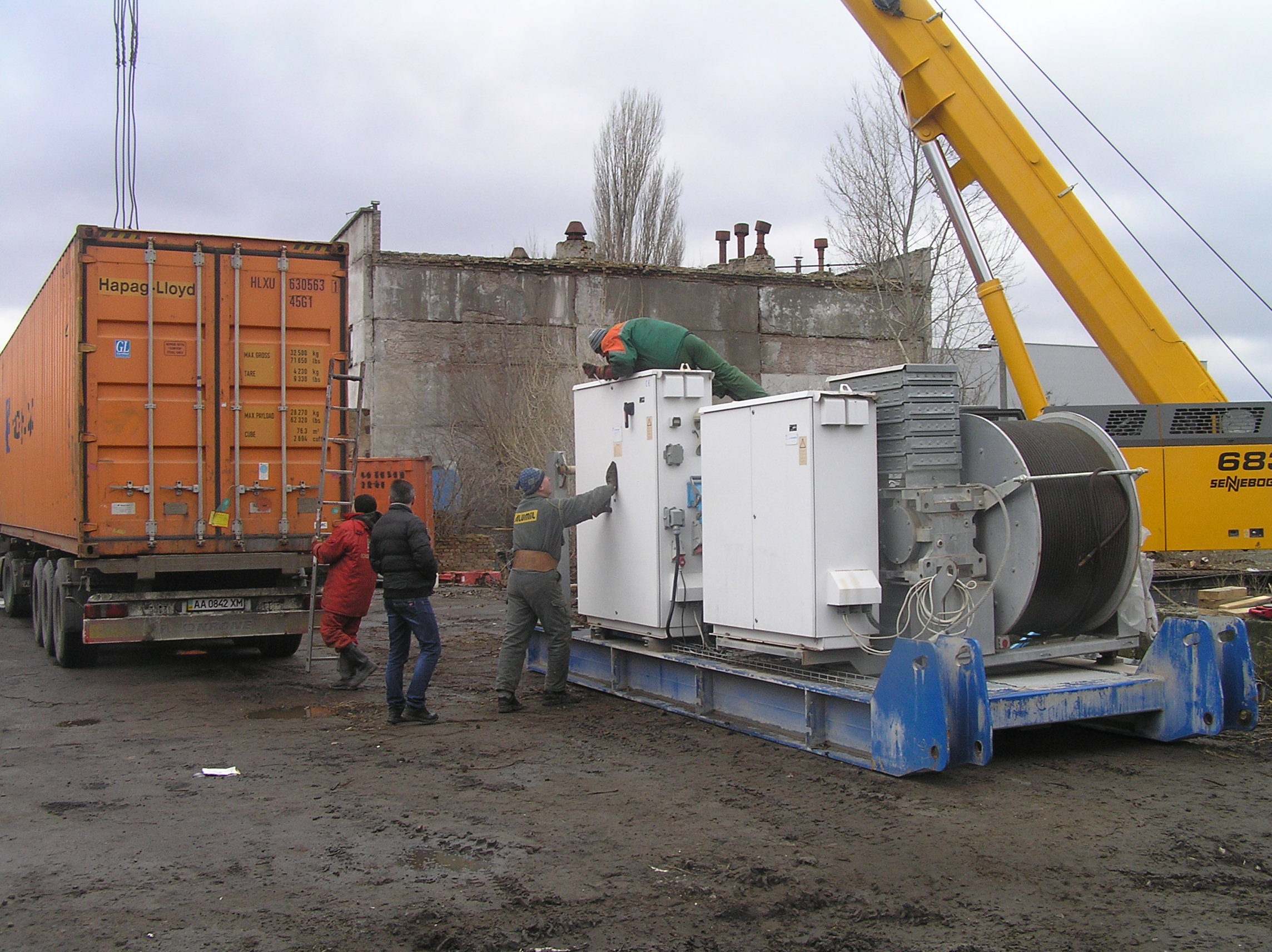 Обе конструкции предстояло запихать в контейнер для последующей отправки в порт. Зазор между грузом и стенками контейнеров составлял около 2-х см., что при длине груза 6 м. и большой массе сильно осложняло задачу. Но слаженная работа обоих коллективов и помощь могучего самоходного крана и погрузчика позволила выполнить такелажные работы в достаточно сжатые сроки.