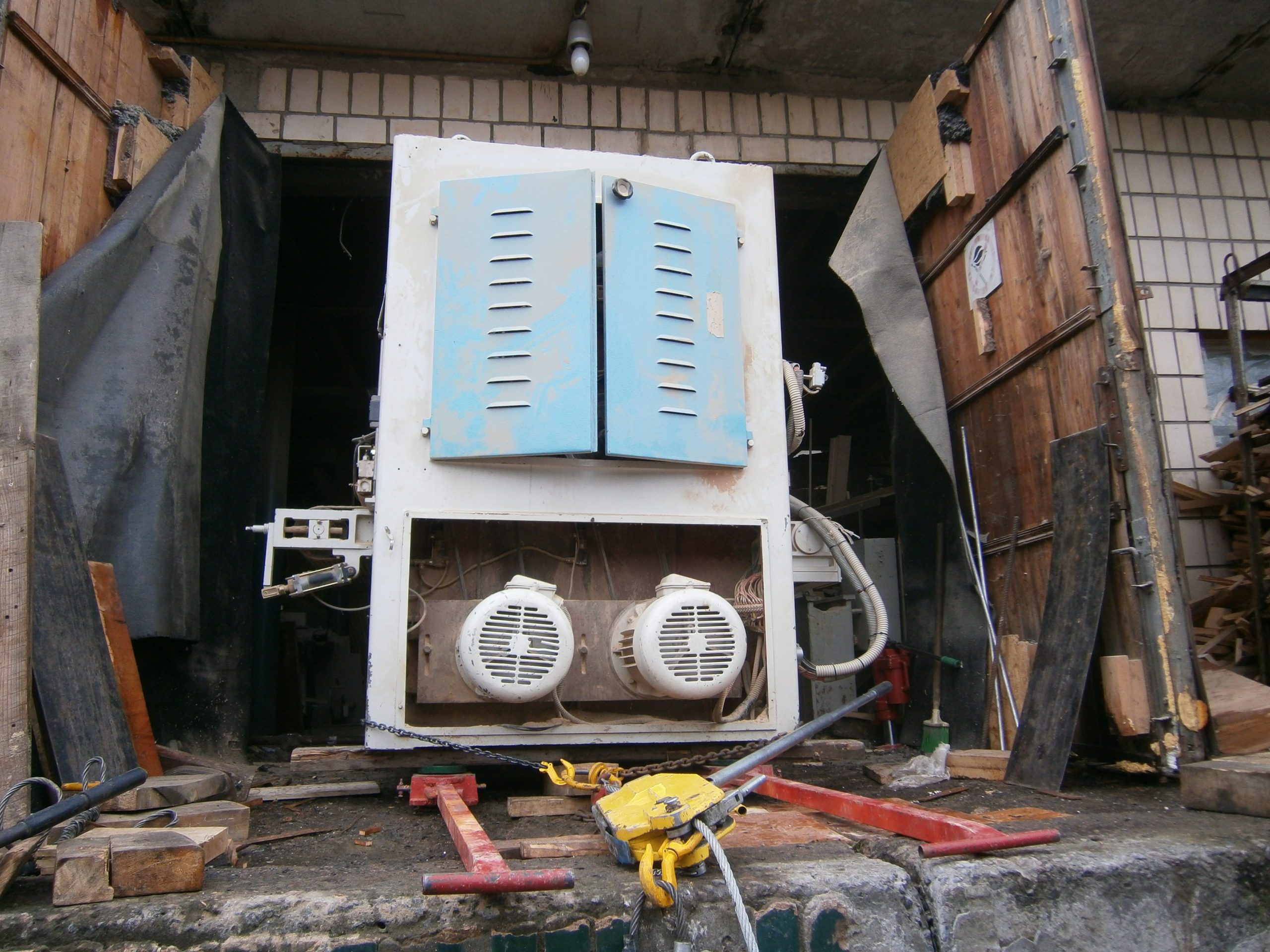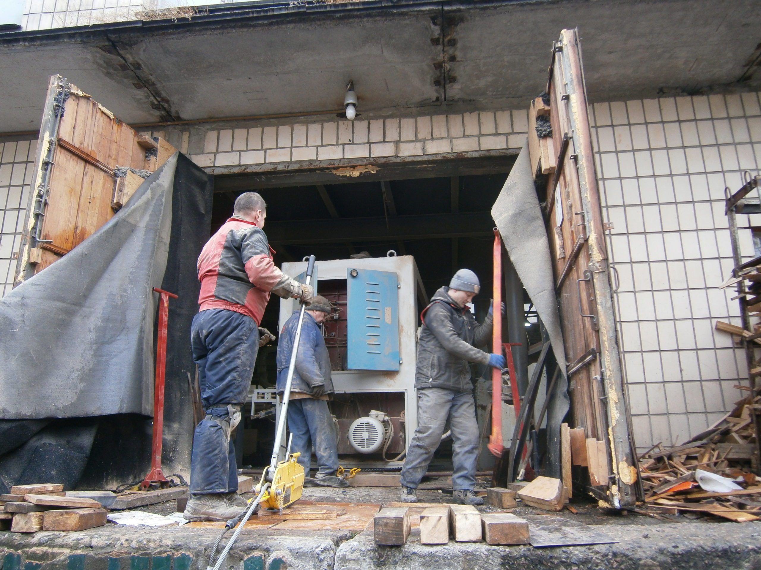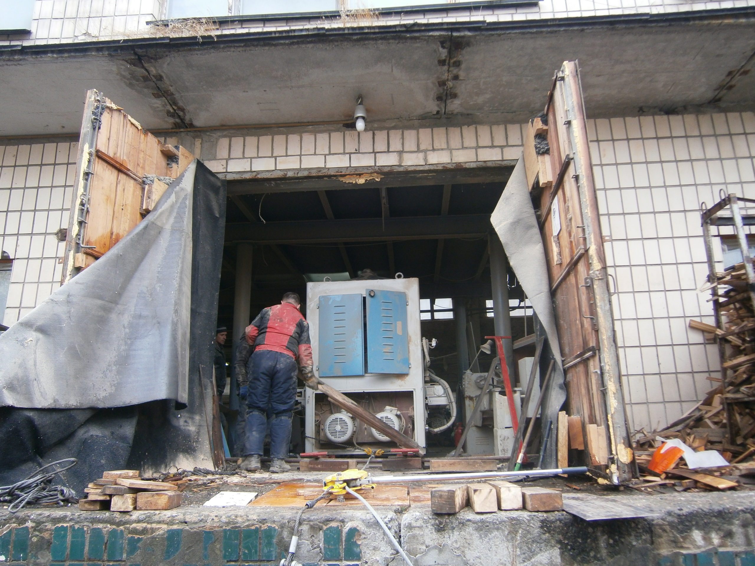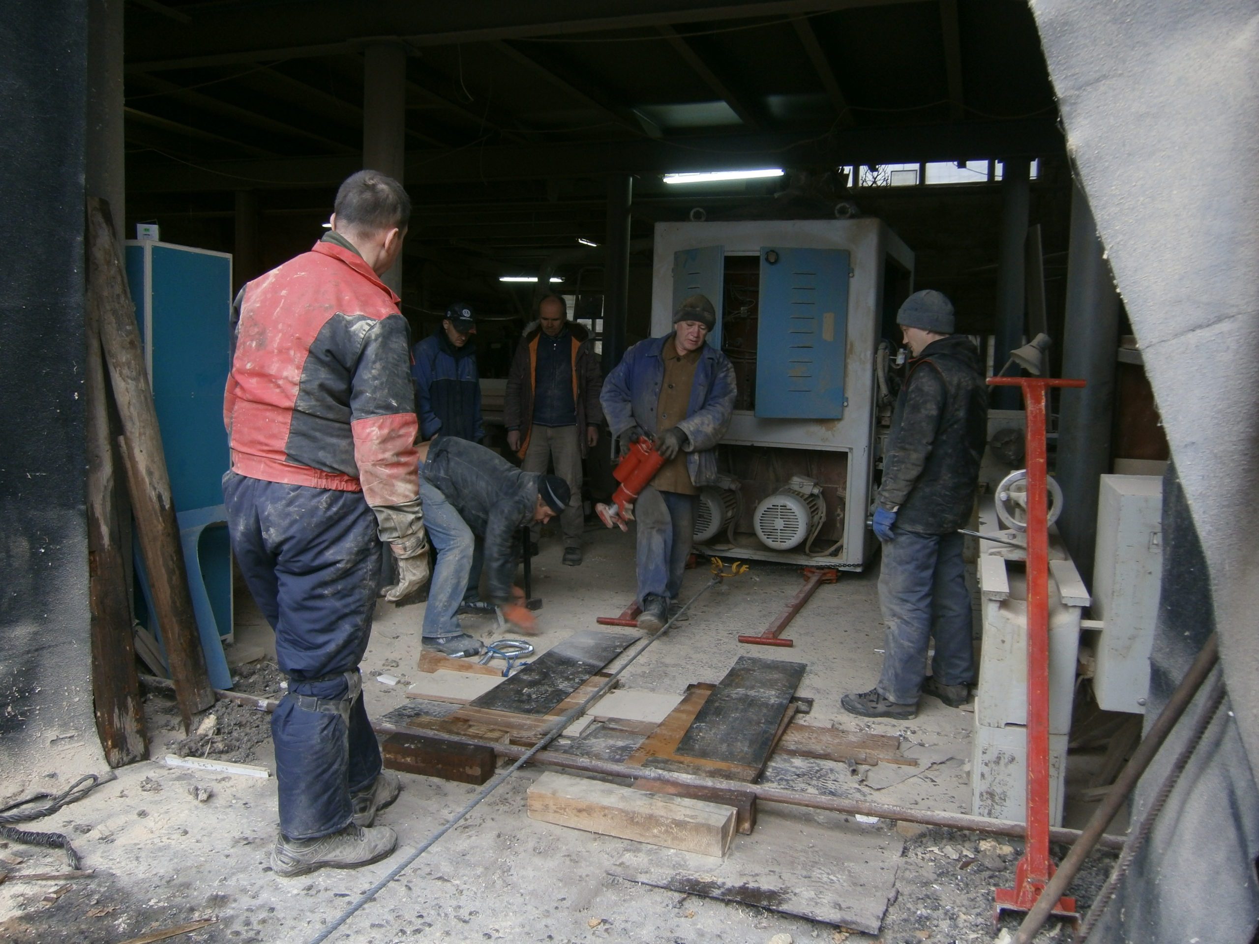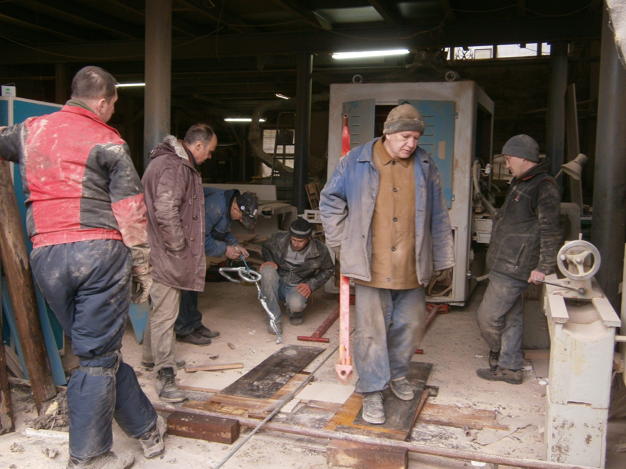 Деревообрабатывающий станок был куплен и ждал переезда на новое место работы. Вес был оценен заказчиком в пять тонн. Все было на первый взгляд несложно – прямоугольная жесткая конструкция, прочный бетонный пол, катить до рампы не больше пятнадцати метров – не работа, а удовольствие! Радоваться мешала одна мелочь — перед воротами поперек дороги на небольшой высоте над полом проходила водопроводная труба. Рабочая, с водой, под давлением. По словам заказчика, если бы не эта труба – сам бы выкатил, на трубах.