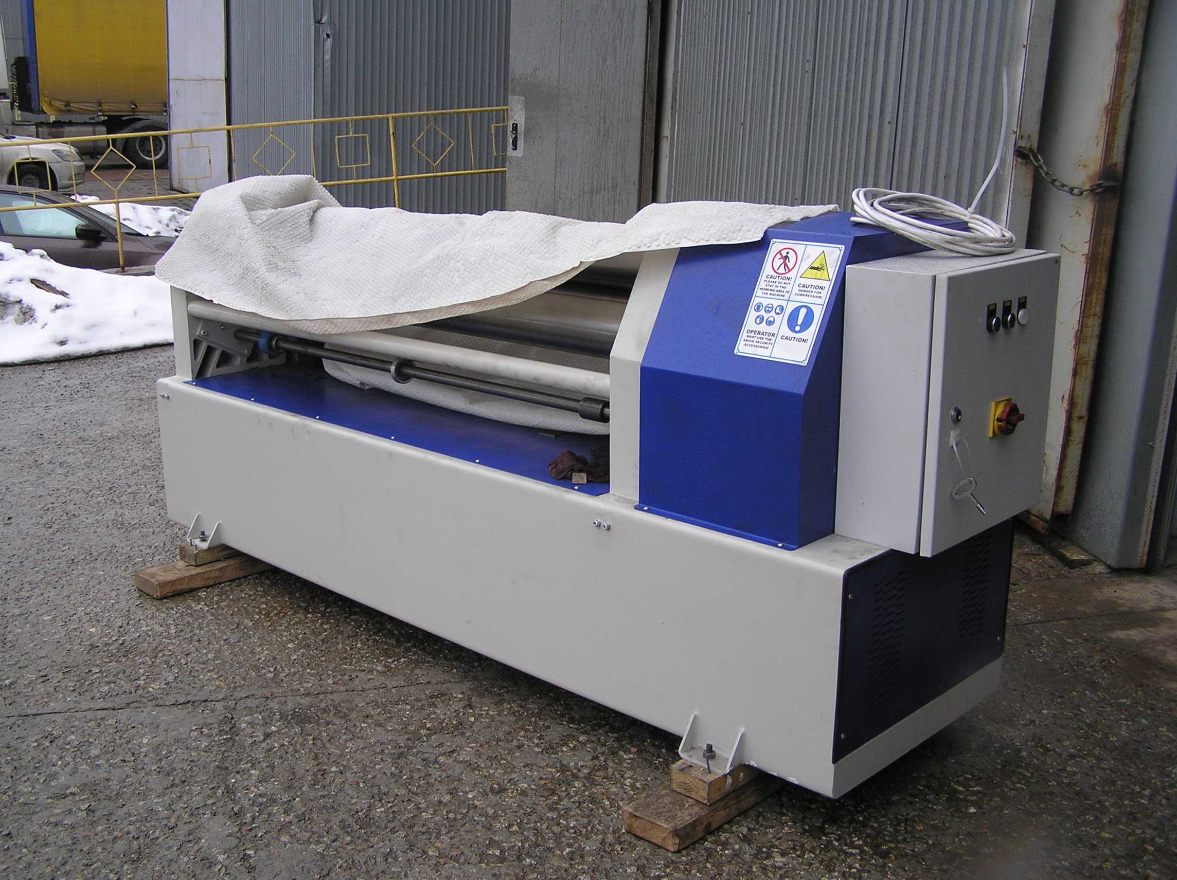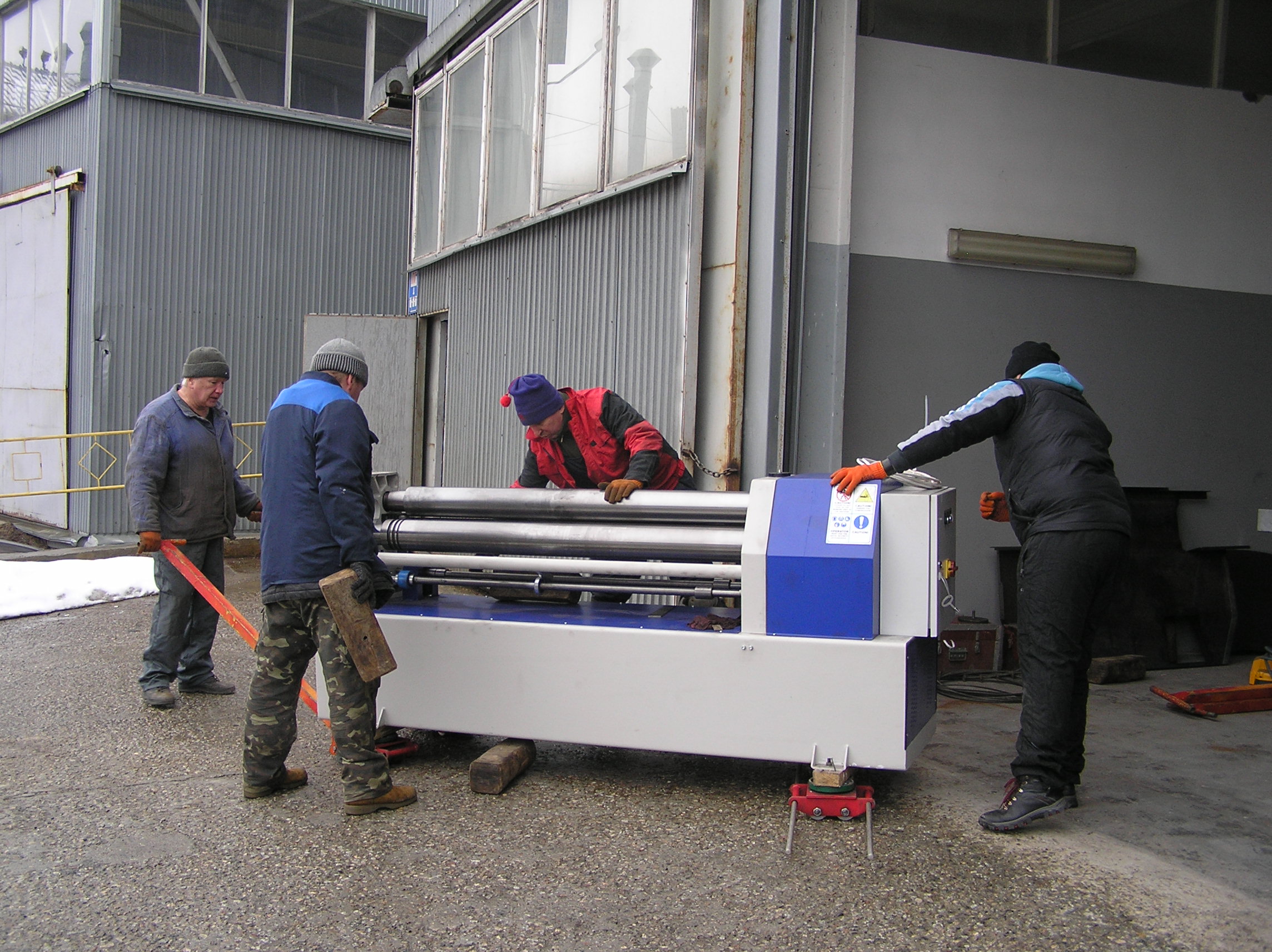Полы в цеху были довольно ровными и вальцовочный станок мы выкатили вручную, предварительно установив его на катки.