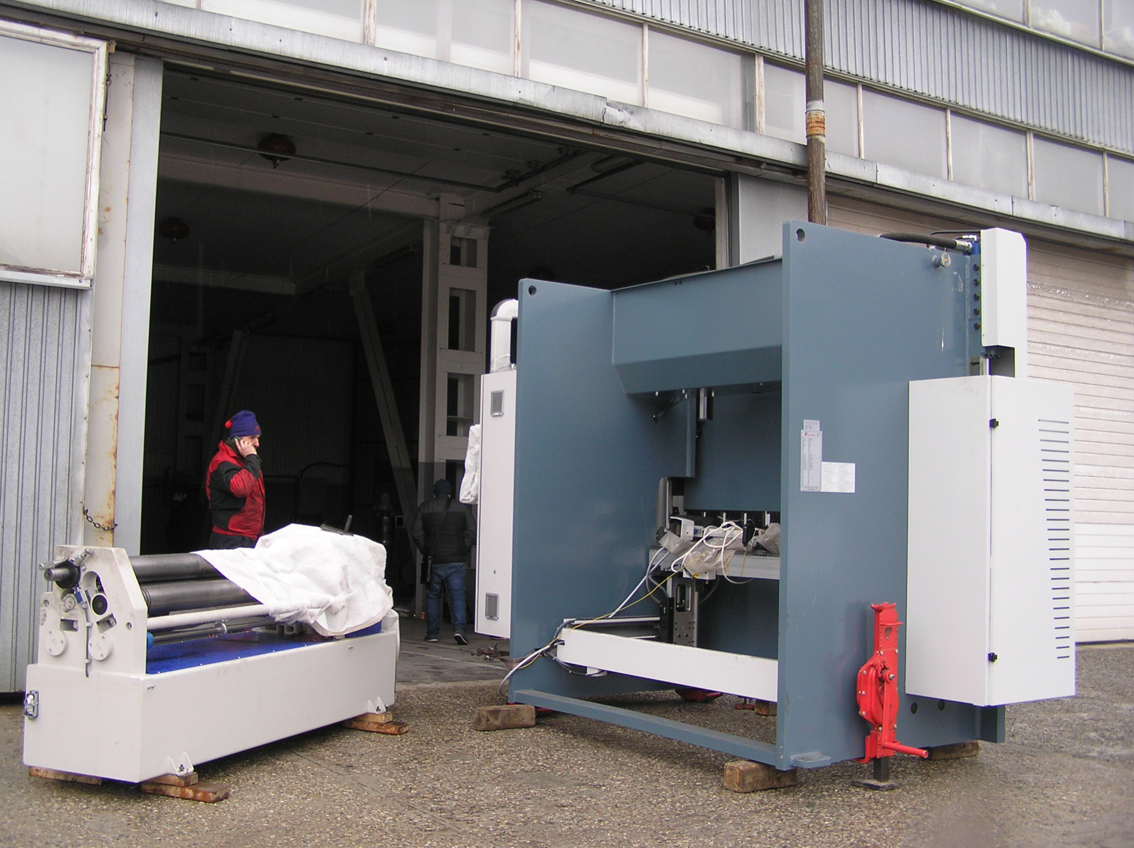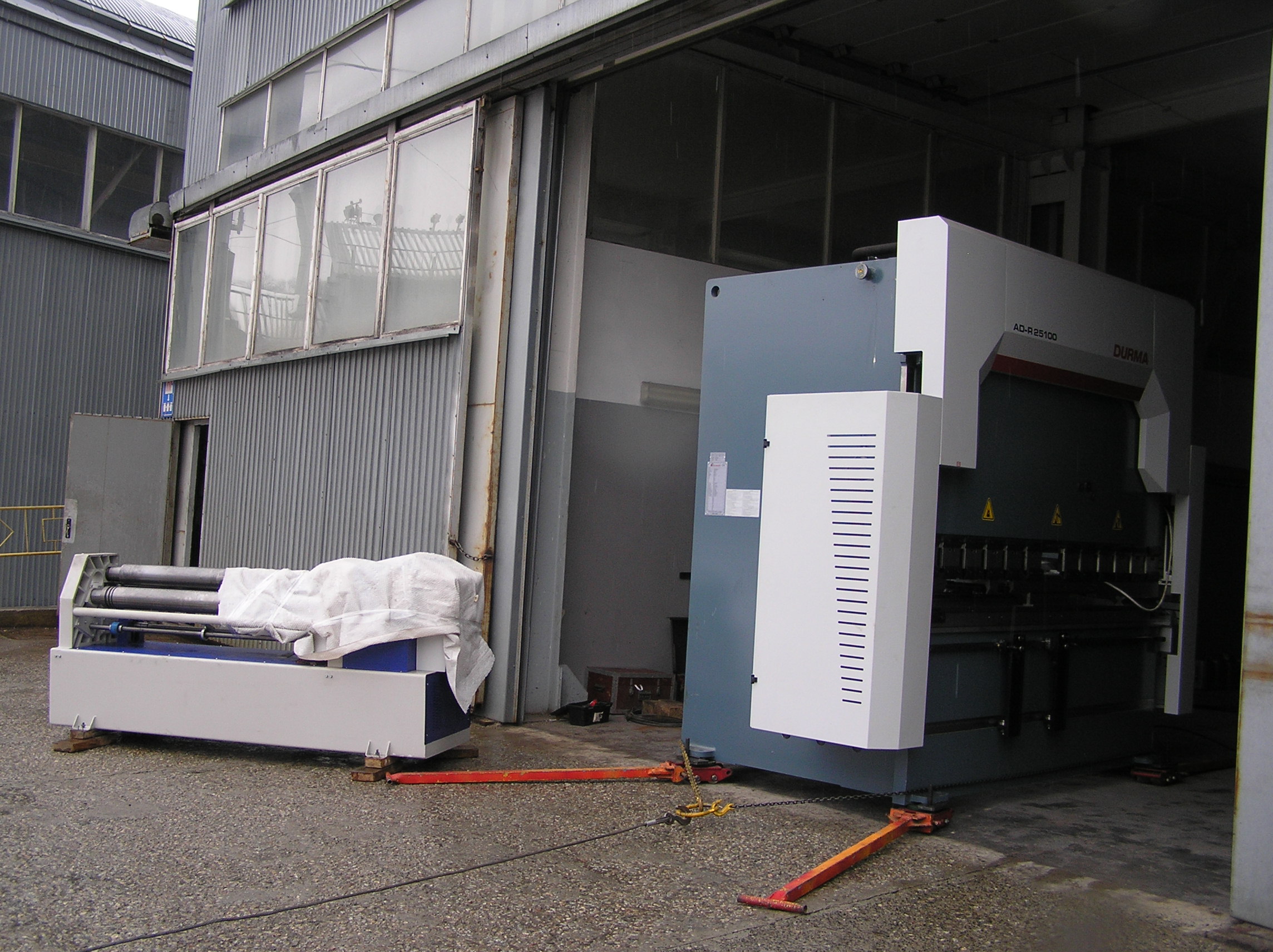 Два станка — вальцовочный весом около тонны и листогиб весом в 8 тонн предстояло переместить из цеха и погрузить на фуру. Первым делом станки предстояло подготовить к отправке. И вальцы, и листогиб мы отключили от электропитания, отсоединили кабели выносных пультов управления, сняли навесное оборудование, которое выходило за габарит и могло быть повреждено при погрузке. Комплект пуансонов был поштучно упакован и увязан, после чего начались такелажные работы по перемещению вальцовочного станка и листогиба.