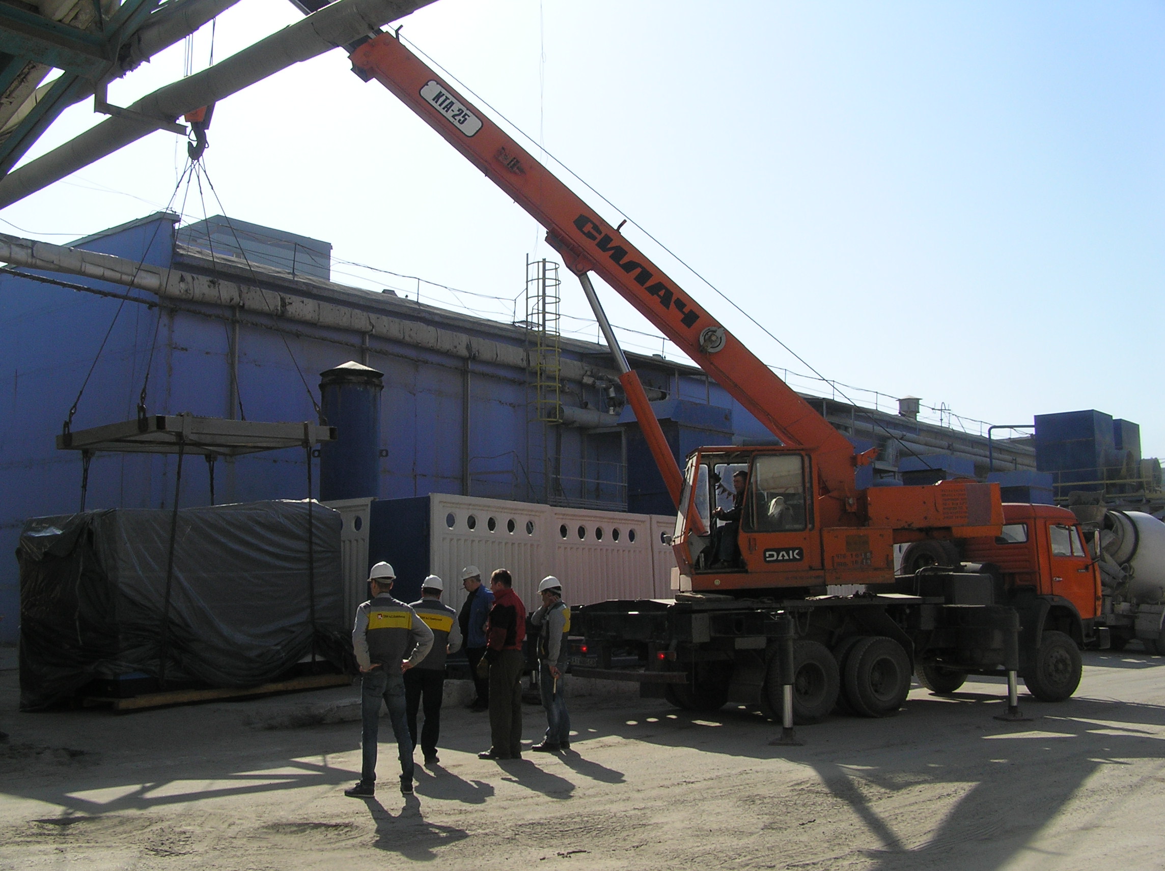 Такелаж компрессора весом 10 000 кг. на заводе ЖБИ им.Ковальской.
