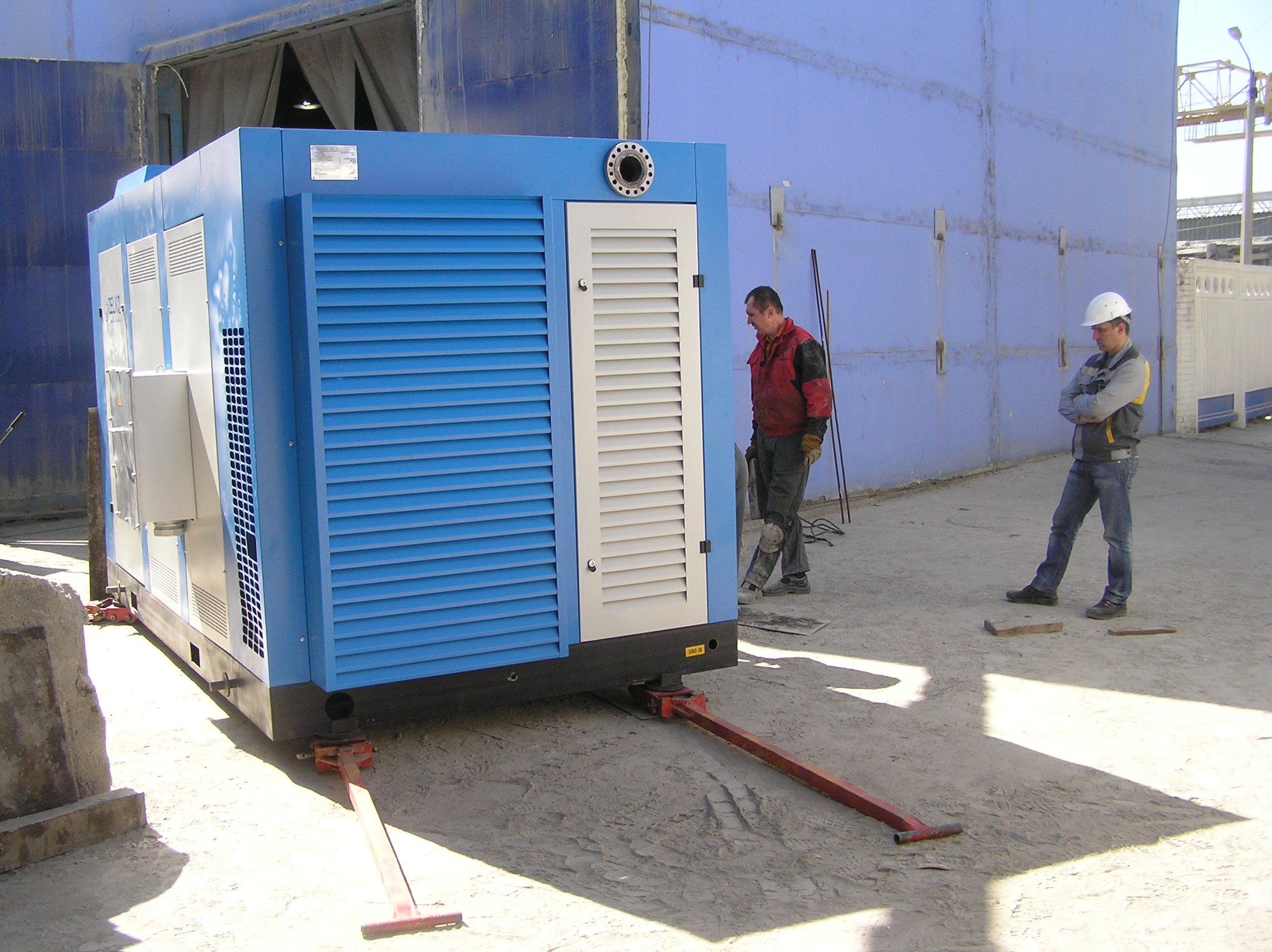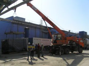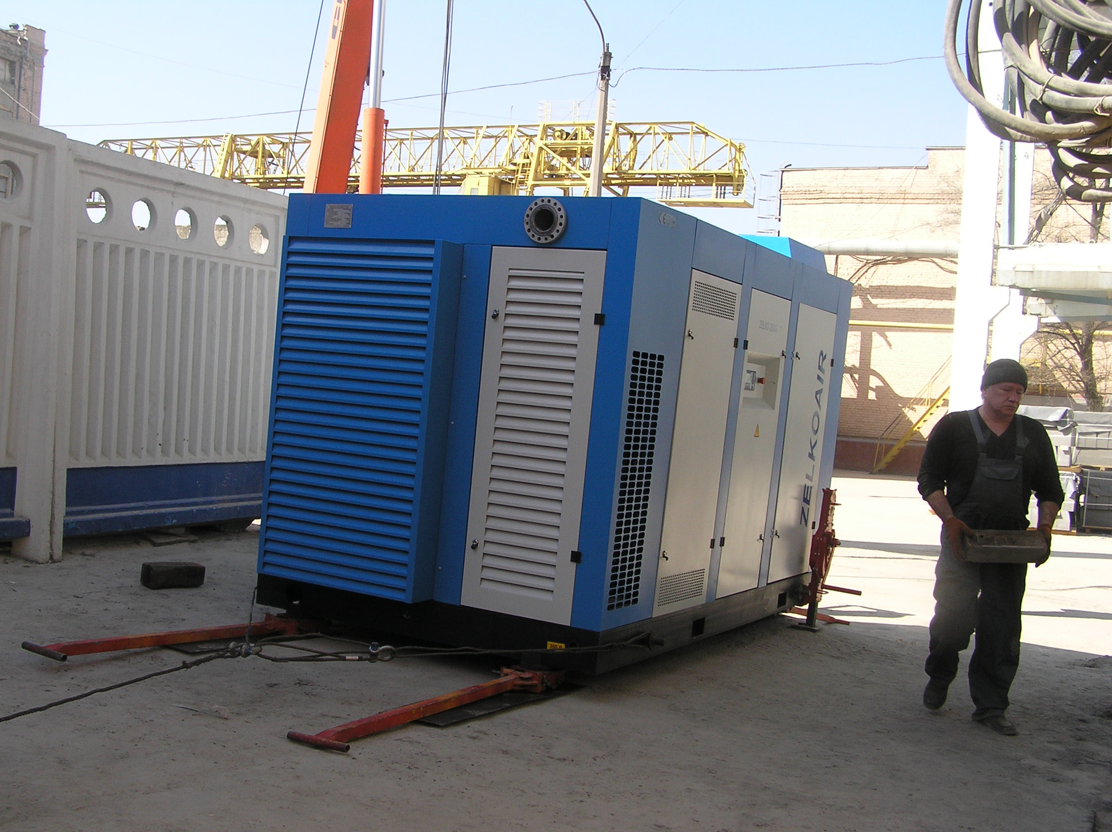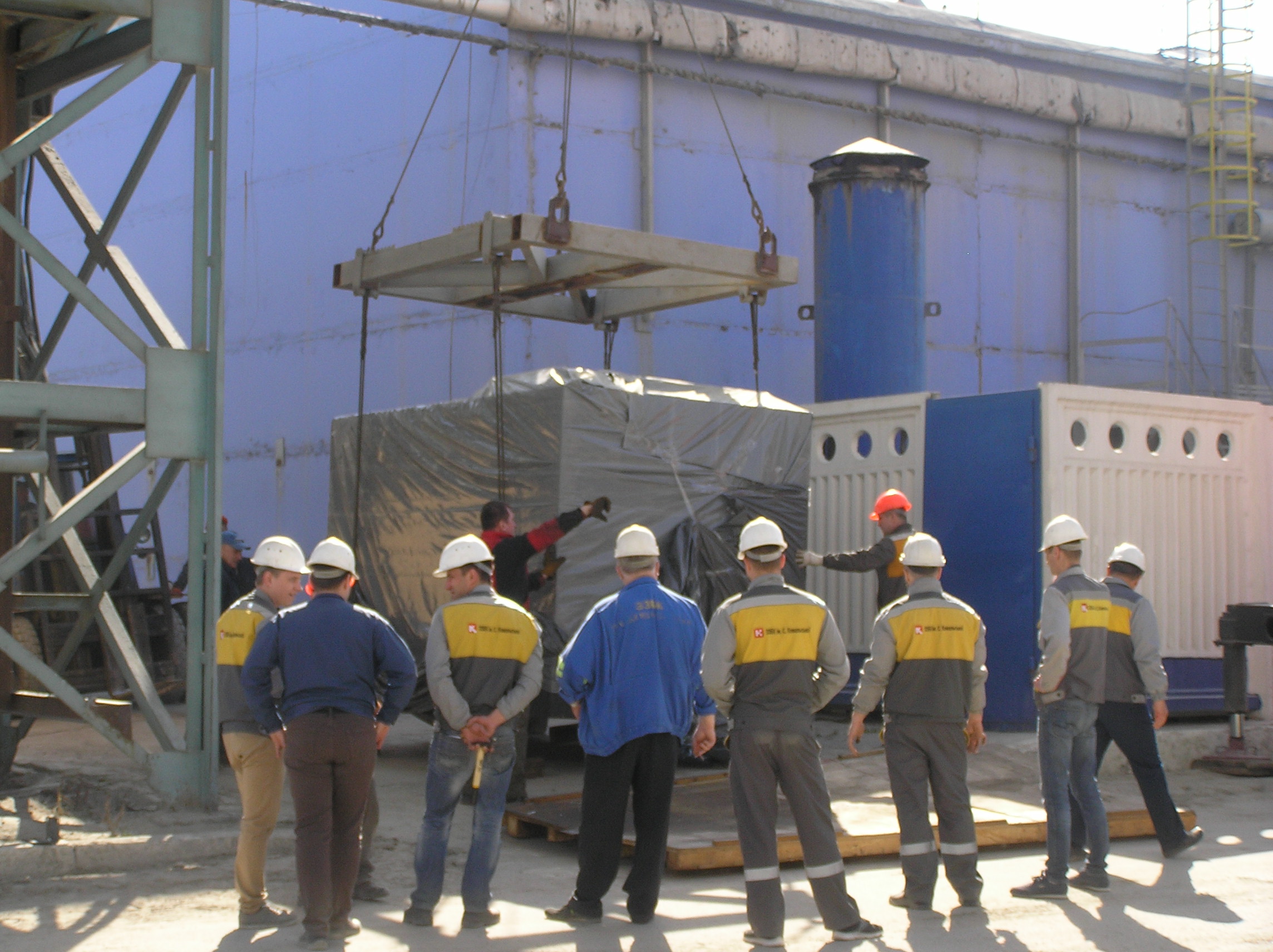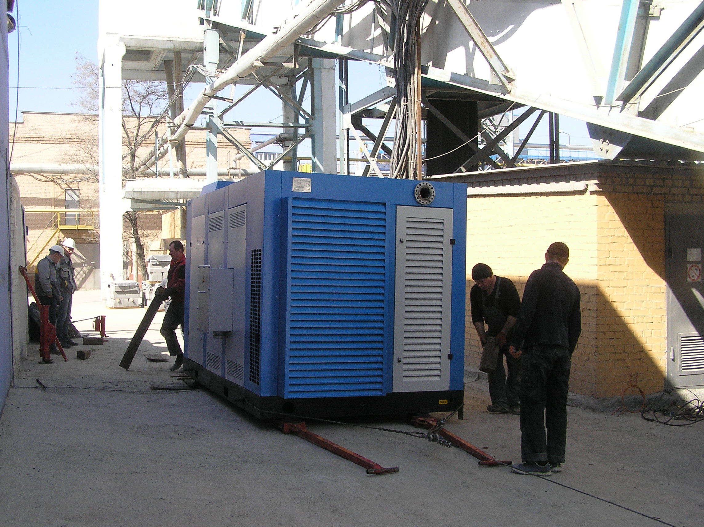 Компрессор весом 10 т был разгружен краном возле въезда в цех. Дальше – наши сильные крановщики такелажники…