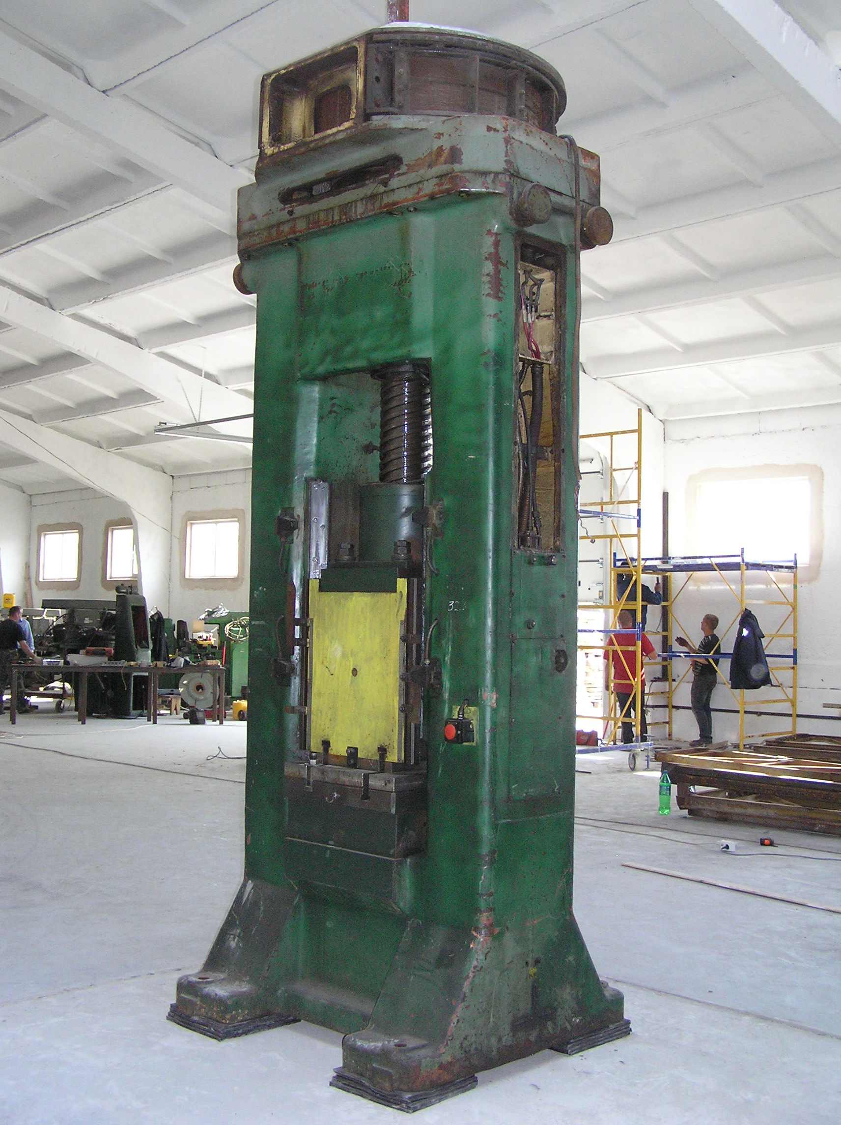 Но есть станки с высоко расположенным центром тяжести. Это всевозможные прессы, штампы, это гильотины и ножницы всех видов с обязательными маховиками в верхней части. К подобным устройствам нужно относиться с уважением, потому что они ошибок не прощают. Как только центр тяжести пресса, к примеру, выходит за площадь его основания – груз приходит в состояние неустойчивого равновесия и может упасть на бочок. И поднять его в рабочее положение будет очень сложно, если вообще возможно.