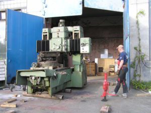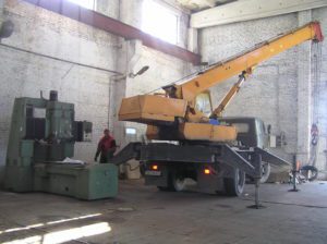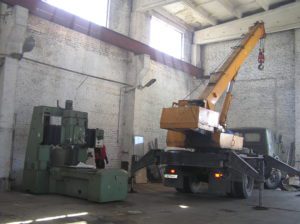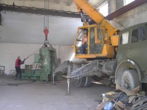 Продольно строгальный станок предстояло вывезти из цеха в связи с продажей его новому владельцу. Такелажные работы существенно упрощались тем обстоятельством, что в цеху, хоть и тесно прижавшись друг к другу, смогли разместиться автокран и грузовая машина. Вес станка составлял 7.5 тонн и за два дня мы не смогли найти грузовик с манипулятором, способный взять этот вес. В очередной раз ситуацию спас опытный крановщик с 12 т краном, стрела которого с минимальным зазором помещалась под потолком производственного цеха. Бережно, едва не задевая стрелой перекрытия цеха, груз был установлен на эвакуатор. Выбор был остановлен на авто-эвакуаторе, так как этот тип грузовика имеет минимальную высоту платформы, позволяющую проехать со станком в проем ворот цеха. В этой работе многие факторы были «впритык»: не было времени на спокойный поиск крана и грузовика, не было места для обоих машин рядом со станком, не было возможности для нормального подъема и поворота стрелы крана. Как впоследствии оказалось, не было возможности для разгрузки станка автокраном в новом цеху. Приехав на место разгрузки мы обнаружили, что в цех не входит ни авто-эвакуатор с грузом, ни автокран. Было принято решение разгрузиться на улице, а станок в цех затягивать с помощью такелажного оборудования. Очередным сюрпризом было отсутствие электричества в новом цеху. Но нас было уже не остановить. Станок медленно заехал за ворота цеха, вспомогательные шкафы тоже практически не сопротивлялись проведению такелажных работ — работа была сделана и сделана «на отлично». Изначально запланированные на полдня, такелажные работы растянулись на целый день. Погрузить станок на машину и затащить станок в цех в этом случае превратилось в непростую и интересную задачу. Решить ее успешно помог профессионализм давно работающего с нами крановщика, широкий выбор такелажных приспособлений, надежные помощники и опыт, бесценный опыт проведения такелажных работ. Все эти факторы, будем надеяться, убедили наших заказчиков в том, что выбор компании » Блокмастер» — это удачный выбор.