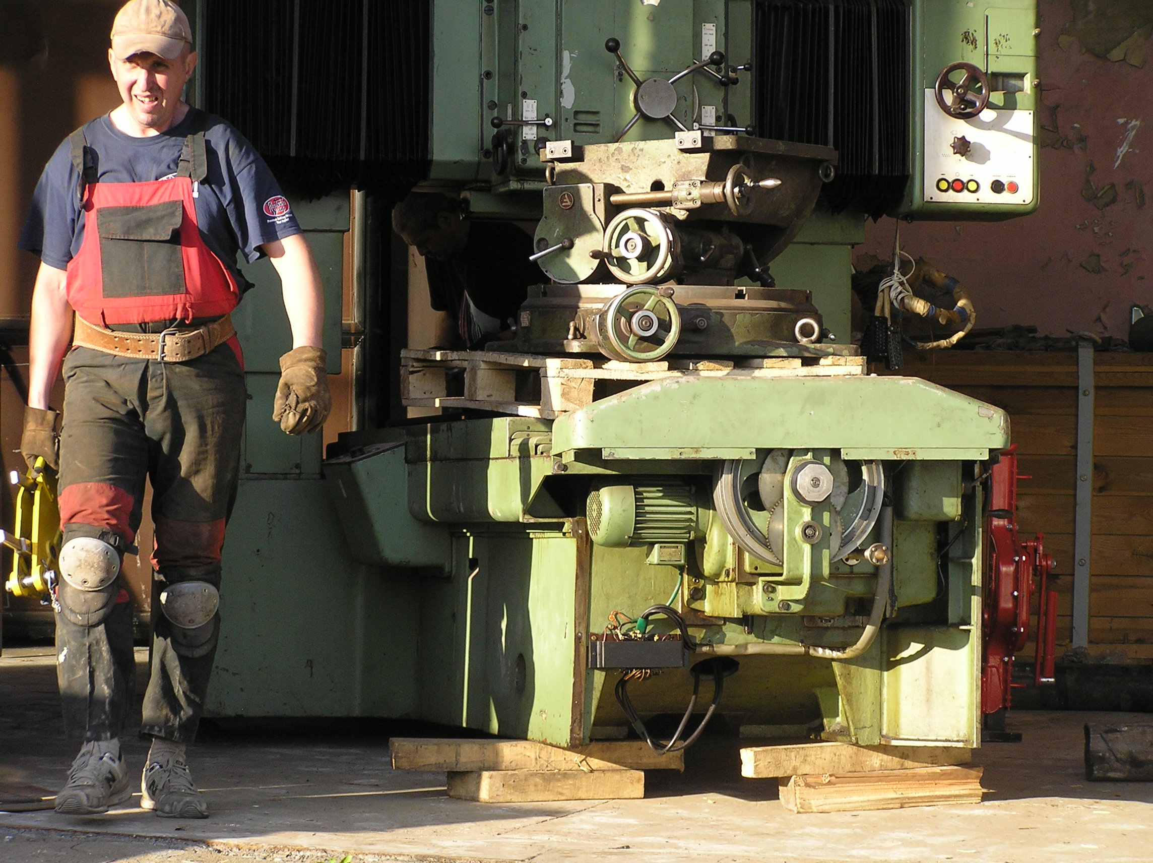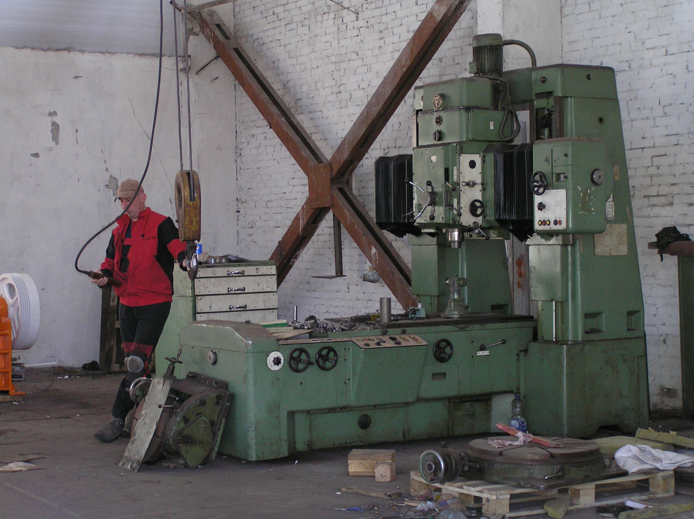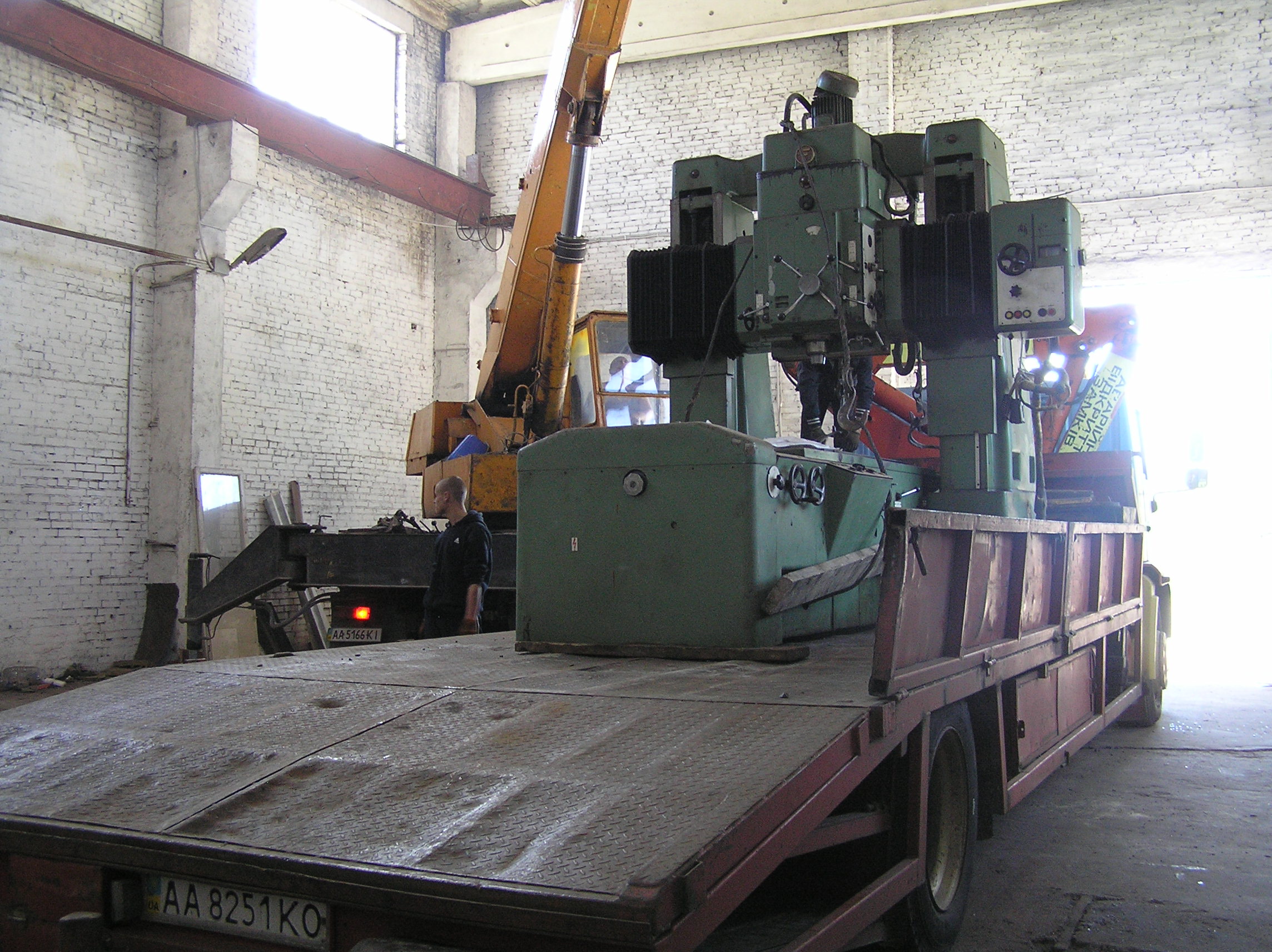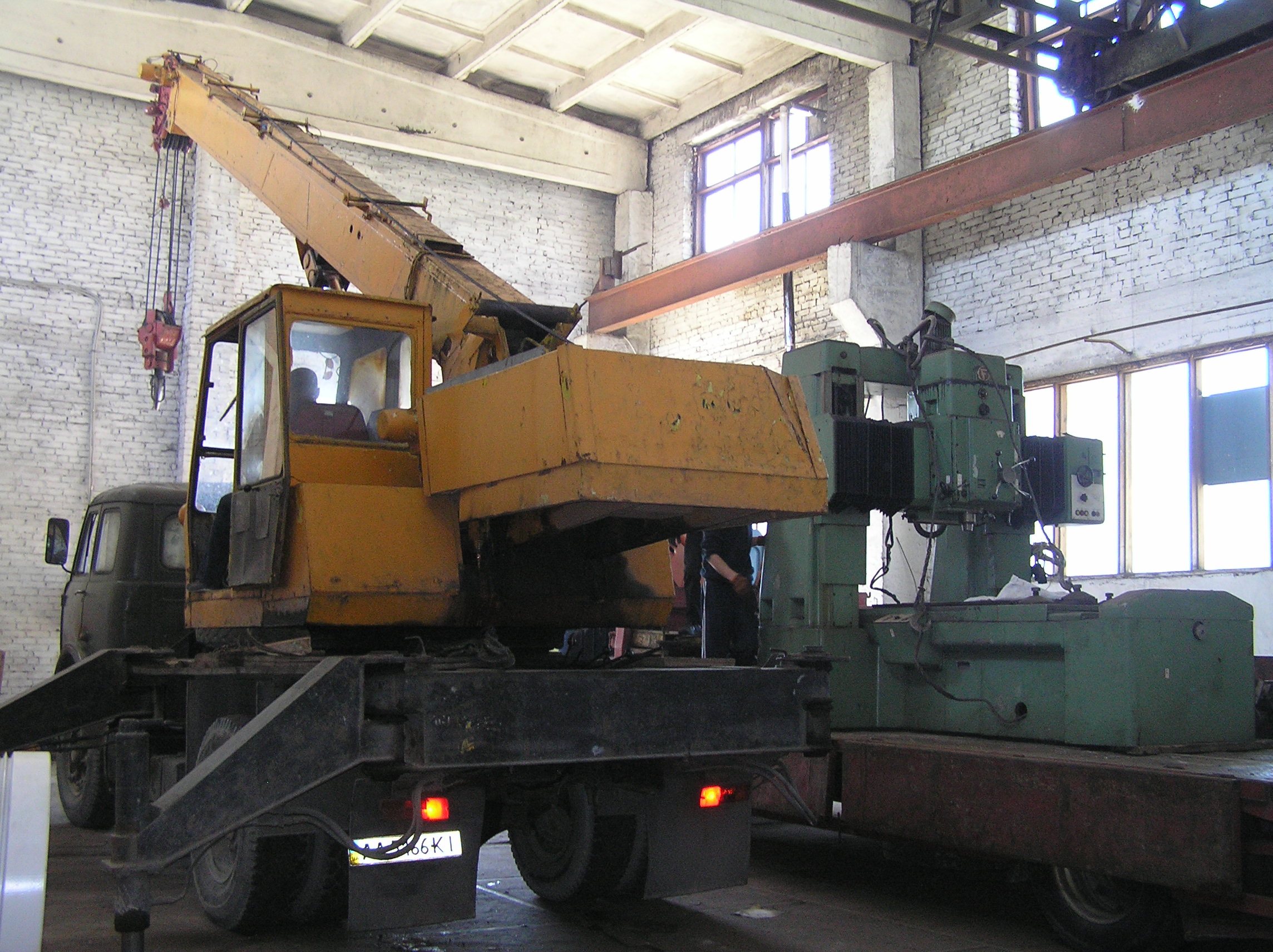 Продольно строгальный станок предстояло вывезти из цеха в связи с продажей его новому владельцу. Такелажные работы существенно упрощались тем обстоятельством, что в цеху, хоть и тесно прижавшись друг к другу, смогли разместиться автокран и грузовая машина. Вес станка составлял 7.5 тонн и за два дня мы не смогли найти грузовик с манипулятором, способный взять этот вес. В очередной раз ситуацию спас опытный крановщик с 12 т краном, стрела которого с минимальным зазором помещалась под потолком производственного цеха. Бережно, едва не задевая стрелой перекрытия цеха, груз был установлен на эвакуатор. Выбор был остановлен на авто-эвакуаторе, так как этот тип грузовика имеет минимальную высоту платформы, позволяющую проехать со станком в проем ворот цеха. В этой работе многие факторы были «впритык»: не было времени на спокойный поиск крана и грузовика, не было места для обоих машин рядом со станком, не было возможности для нормального подъема и поворота стрелы крана. Как впоследствии оказалось, не было возможности для разгрузки станка автокраном в новом цеху. Приехав на место разгрузки мы обнаружили, что в цех не входит ни авто-эвакуатор с грузом, ни автокран. Было принято решение разгрузиться на улице, а станок в цех затягивать с помощью такелажного оборудования. Очередным сюрпризом было отсутствие электричества в новом цеху. Но нас было уже не остановить. Станок медленно заехал за ворота цеха, вспомогательные шкафы тоже практически не сопротивлялись проведению такелажных работ — работа была сделана и сделана «на отлично». Изначально запланированные на полдня, такелажные работы растянулись на целый день. Погрузить станок на машину и затащить станок в цех в этом случае превратилось в непростую и интересную задачу. Решить ее успешно помог профессионализм давно работающего с нами крановщика, широкий выбор такелажных приспособлений, надежные помощники и опыт, бесценный опыт проведения такелажных работ. Все эти факторы, будем надеяться, убедили наших заказчиков в том, что выбор компании » Блокмастер» — это удачный выбор.