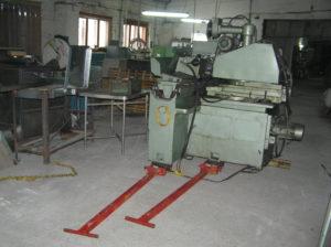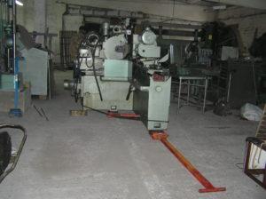 Шлифовальный станок весом около 4 тонн предстояло перевезти из одного производственного помещения в другое. Первым делом станок нужно было выкатить на улицу, чтобы его смог взять манипулятор. Станок домкратами был поднят и установлен на транспортные тележки. Затем он был обвязан и закреплен к лебедке. В несколько заходов, маневрируя по территории цеха, шлифовальный станок был перемещен наружу, в зону действия крана- манипулятора.
