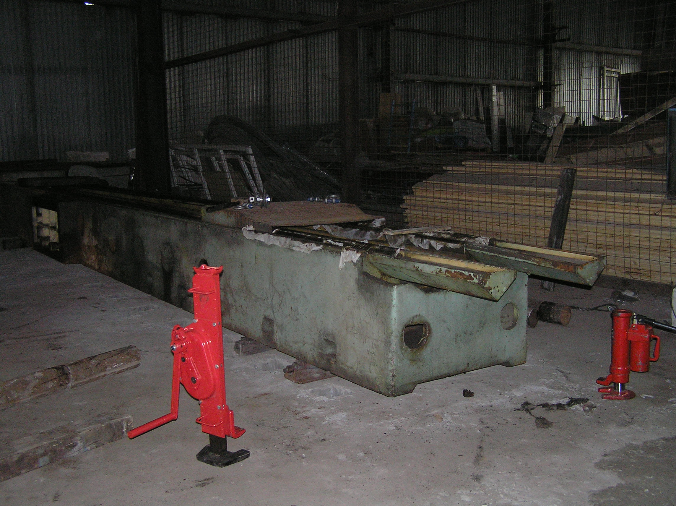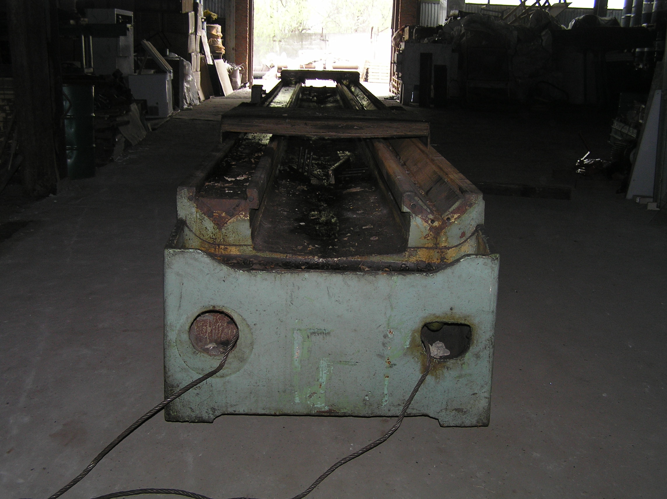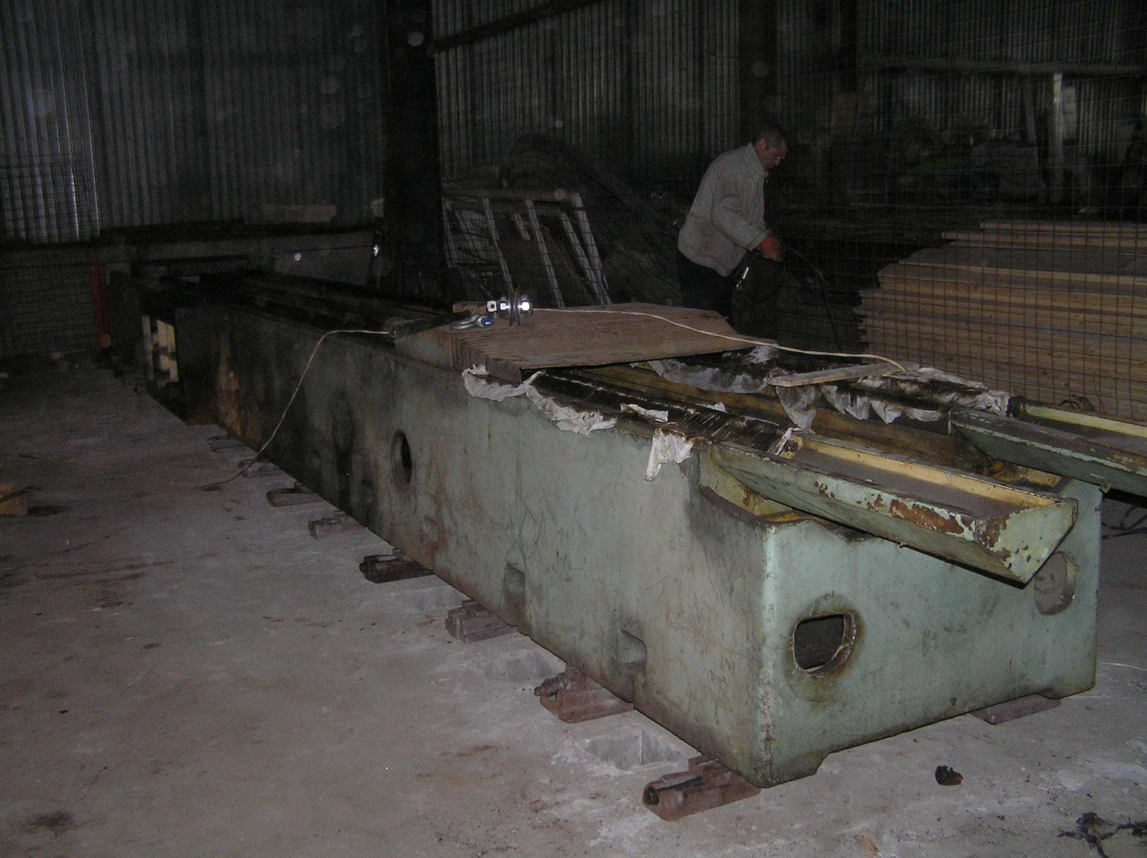 Установить станину предполагалось на залитый ранее фундамент, под анкера станины были оставлены колодцы. Это означало, что переместить тяжелый и длинный груз нужно в конкретное место, с точностью до сантиметра, чтобы все анкера станины стали над своими колодцами. А у длинных грузов есть особенность — начнешь сдвигать переднюю часть влево — задняя обязательно уйдет вправо и не всегда просто с этим бороться.