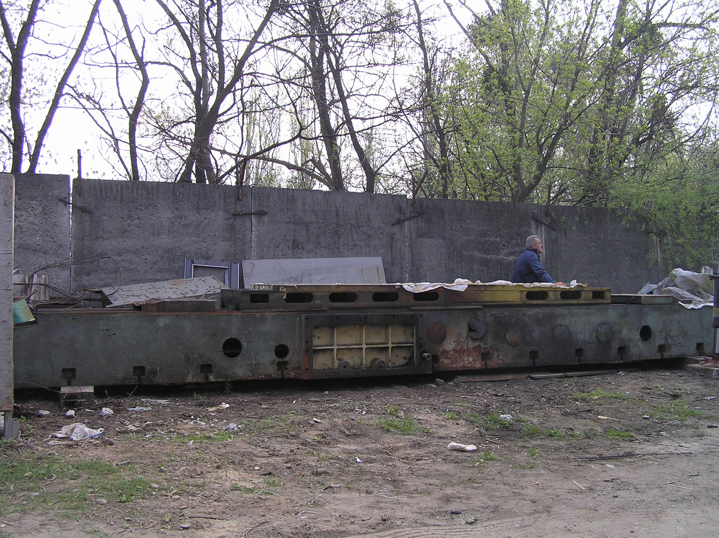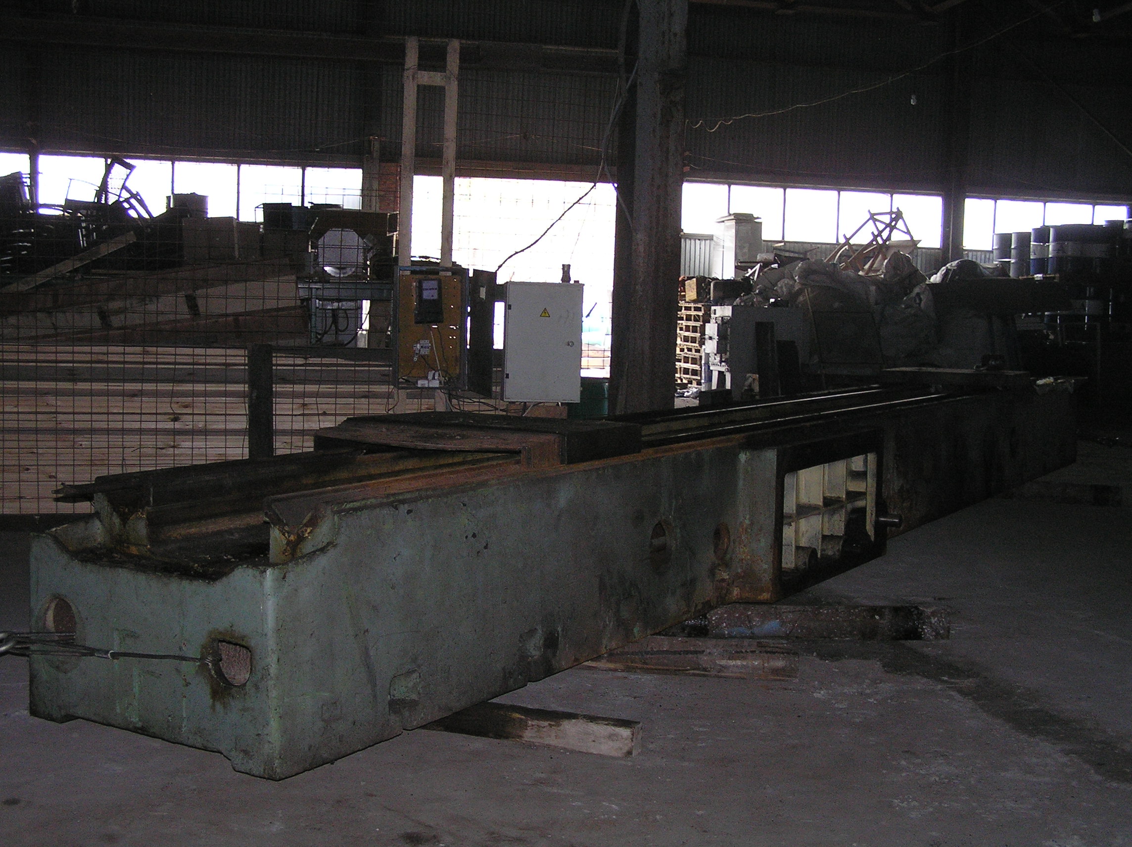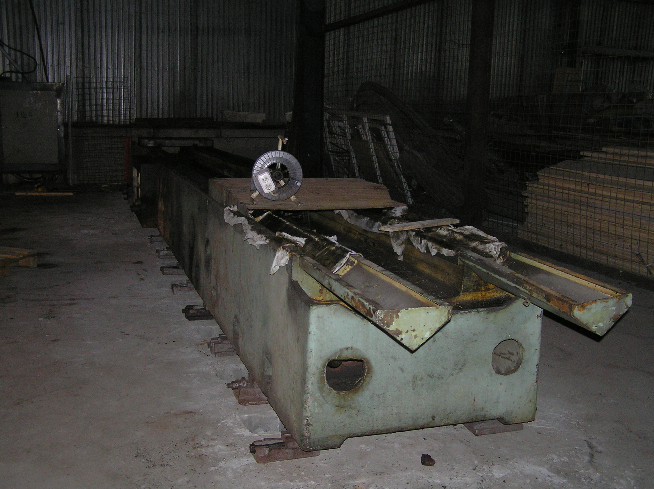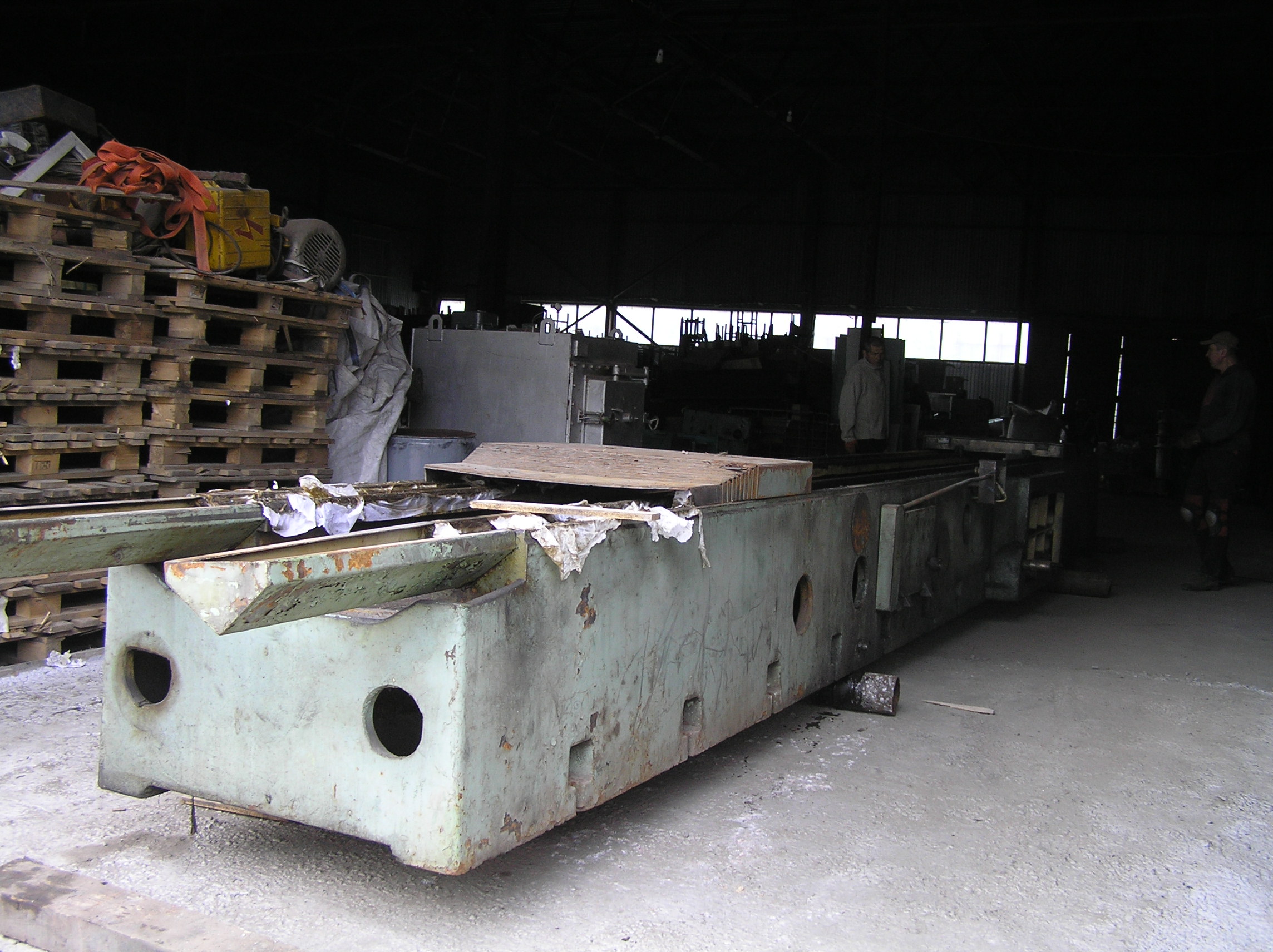 Установить станину предполагалось на залитый ранее фундамент, под анкера станины были оставлены колодцы. Это означало, что переместить тяжелый и длинный груз нужно в конкретное место, с точностью до сантиметра, чтобы все анкера станины стали над своими колодцами. А у длинных грузов есть особенность — начнешь сдвигать переднюю часть влево — задняя обязательно уйдет вправо и не всегда просто с этим бороться.