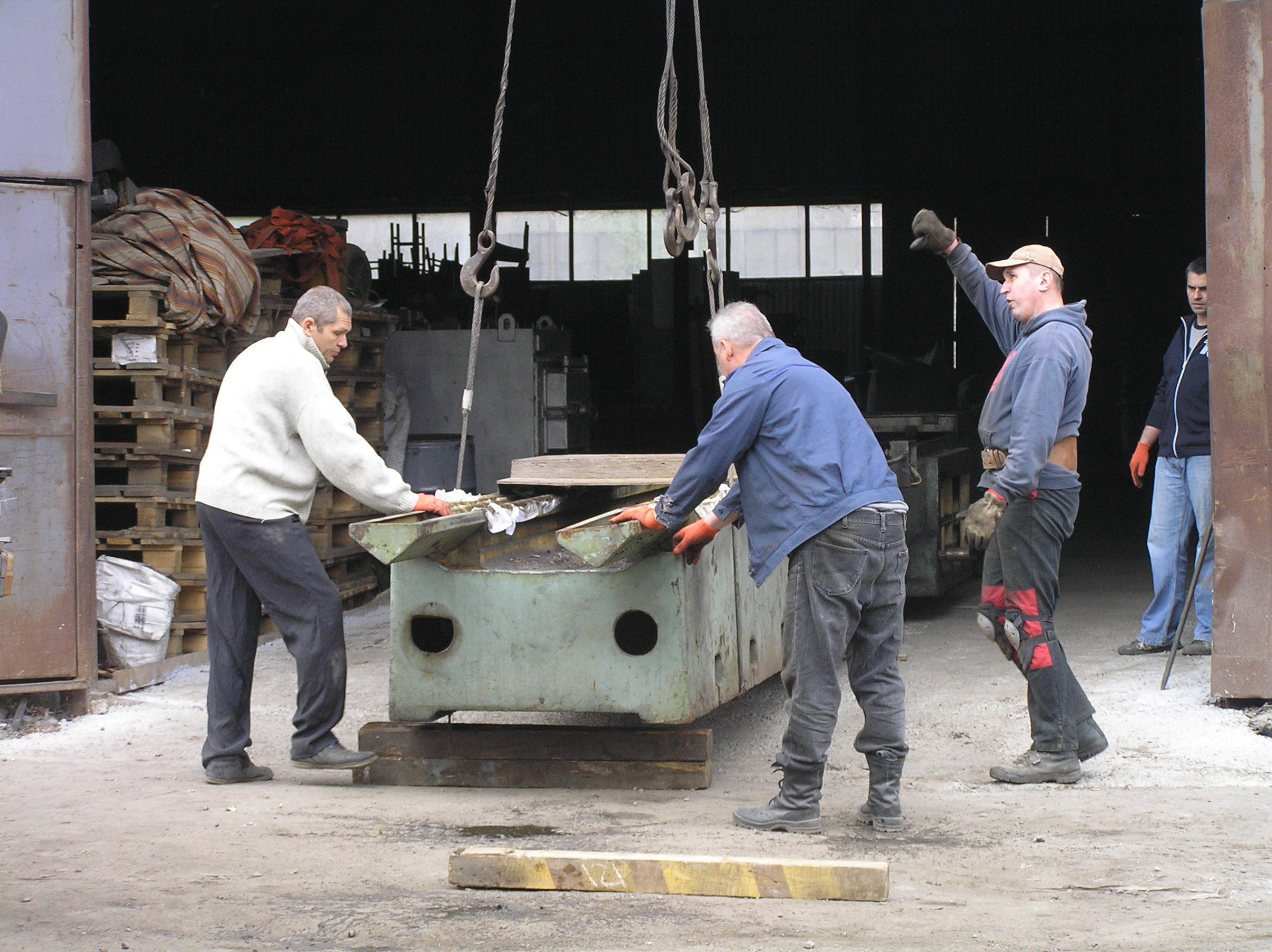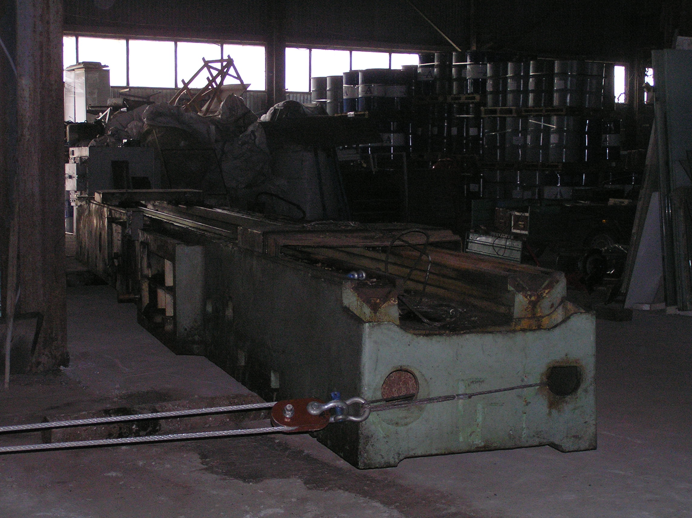 Заказчик предоставил такелажникам компании «Блокмастер» следующую задачу: предстояло переместить в цех к месту сборки станину продольно- фрезерного станка весом более 20 т. Потолки цеха не позволяли использовать для проведения такелажных работ кран необходимой грузоподъемности. Поэтому все, чем кран смог нам помочь — это подать станину на пол-корпуса в цех. А дальше груз переходил в наши руки. Станина имела около 12 м в длину и была плоской снизу — это была редкая удача, позволяющая использовать для такелажных работ трубы. Конечно, трубы с толстой стенкой, которая выдержит такой вес, и достаточно большого диаметра, чтобы преодолевать ямы и неровности бетонных и не только бетонных полов. Эти трубы уже показали себя при перемещении тяжелых грузов и показали отлично.