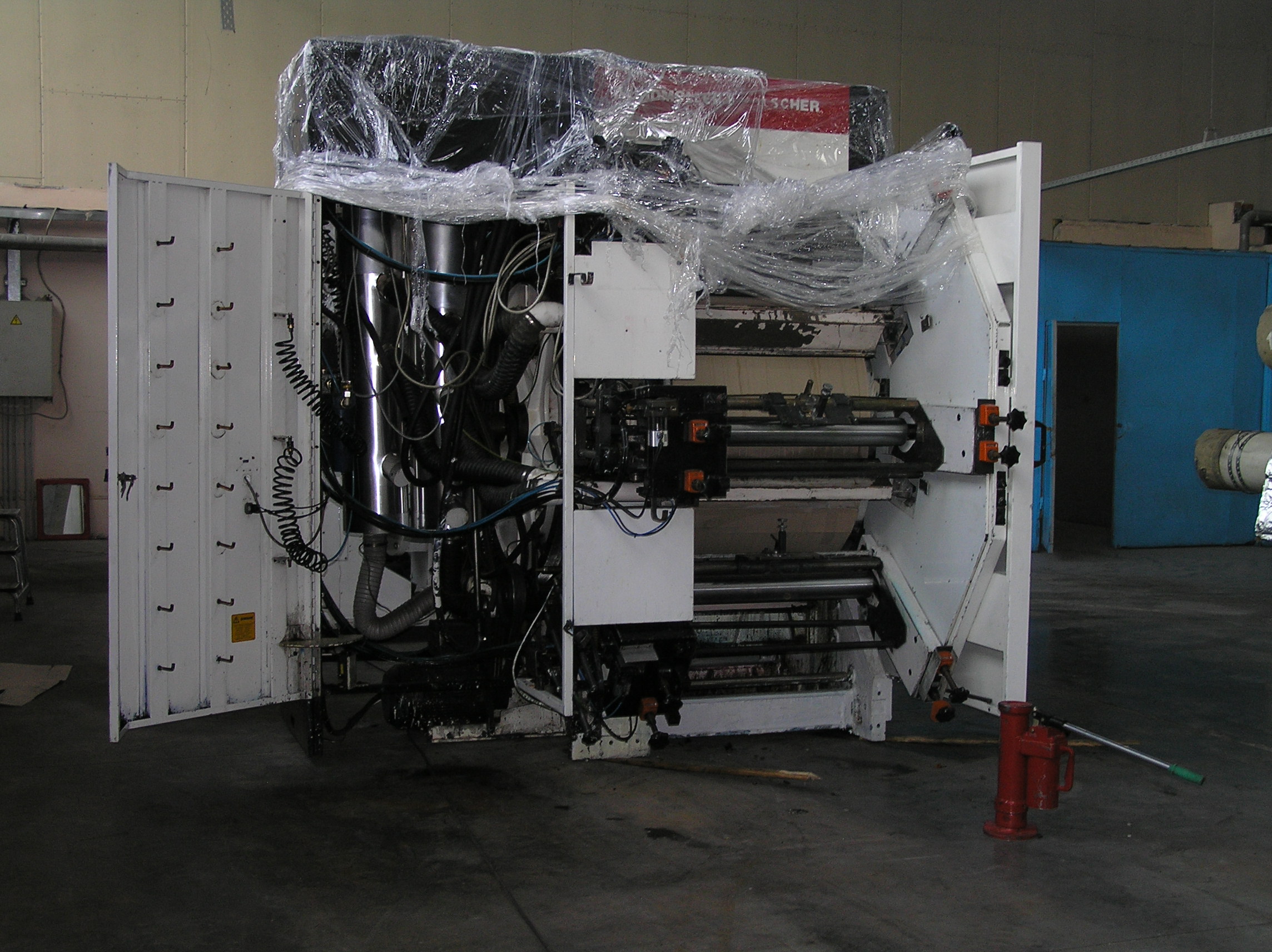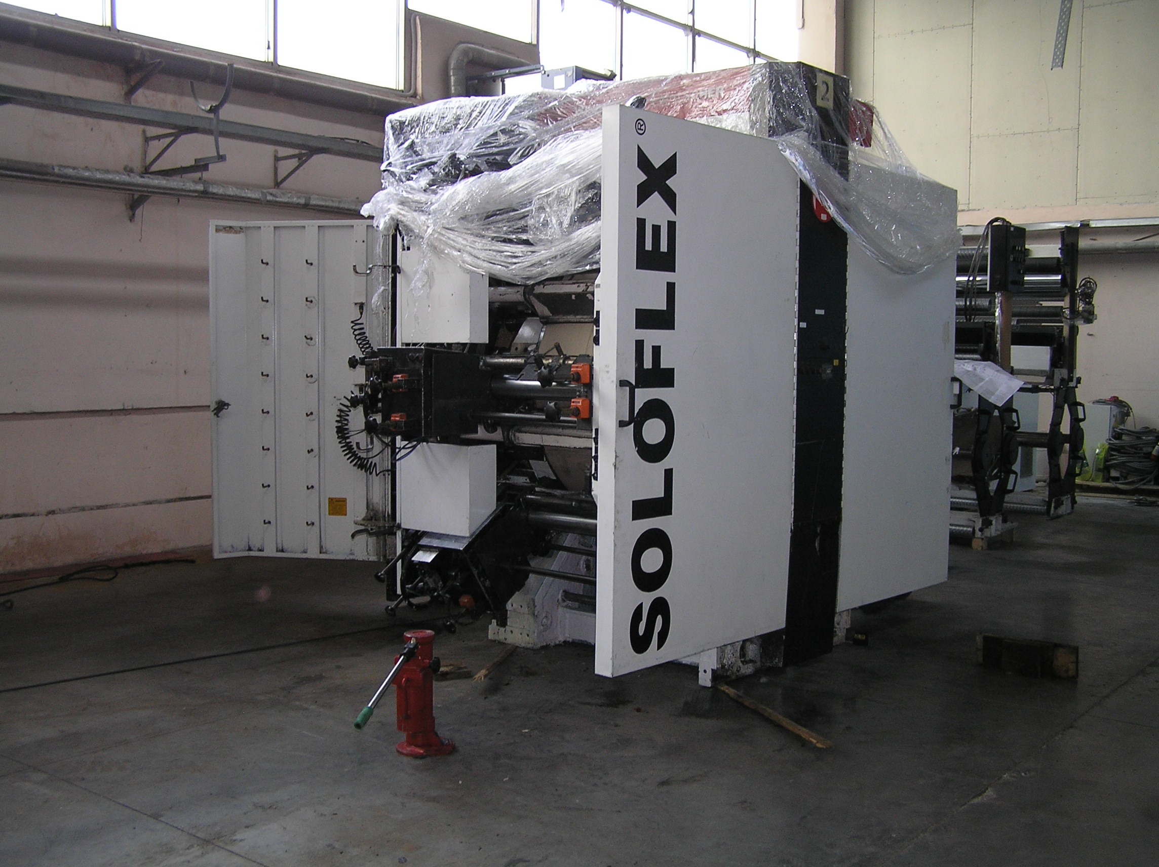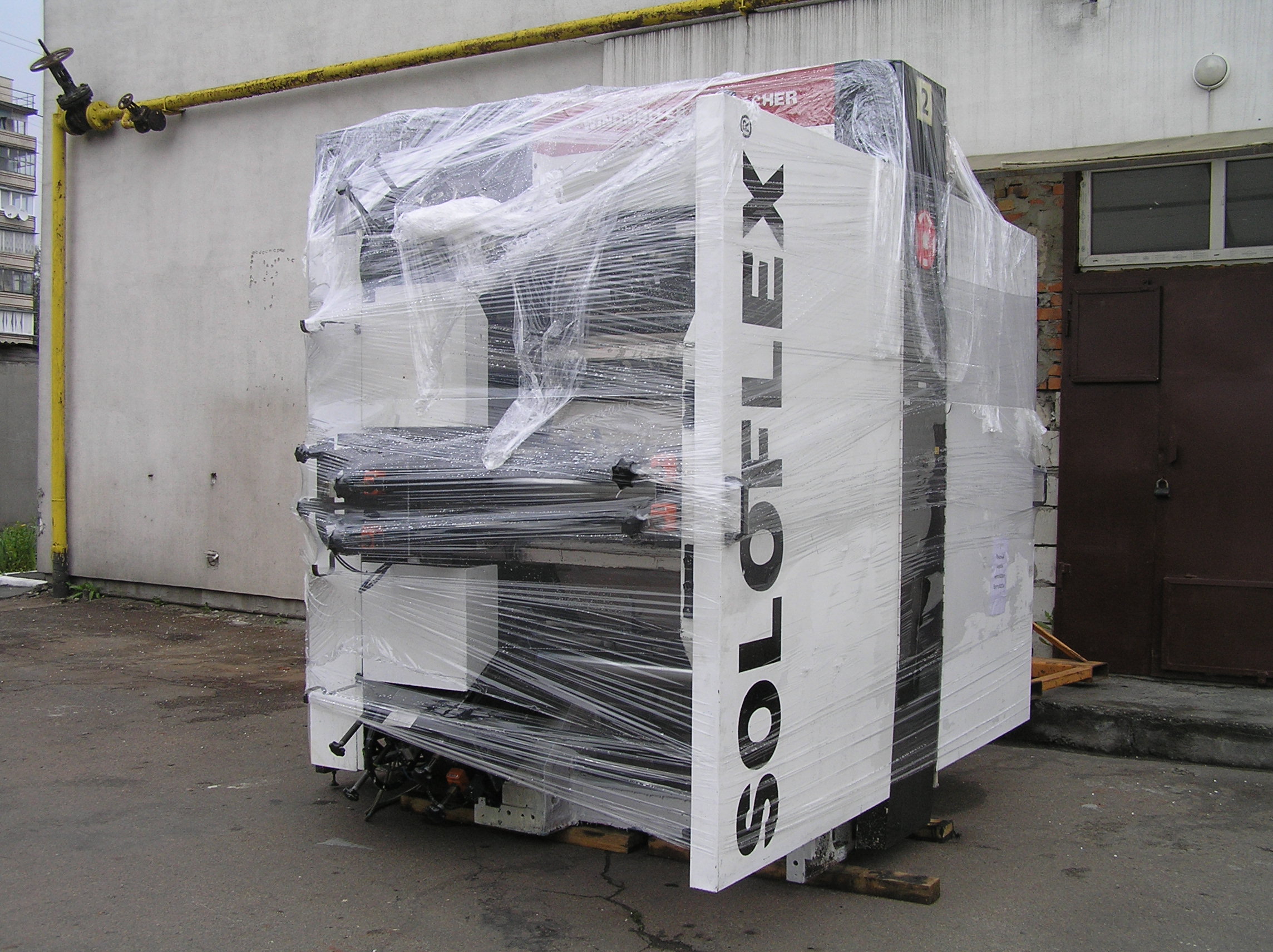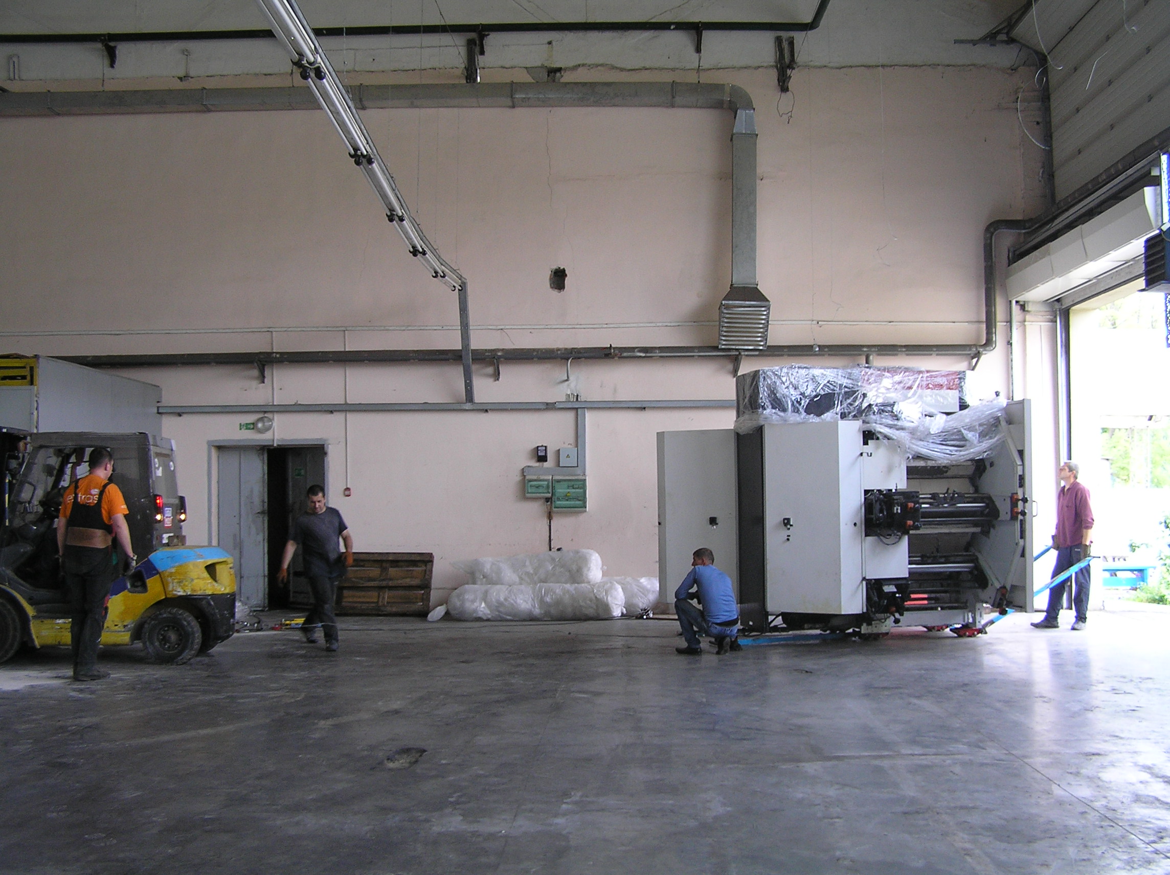 Станок является частью линии по перемотке пленки, поэтому должен был быть установлен строго параллельно своим соседям. Окончательная точная установка станка осуществлялась уже после снятия с катков, когда агрегат стоял на бетонном полу.
