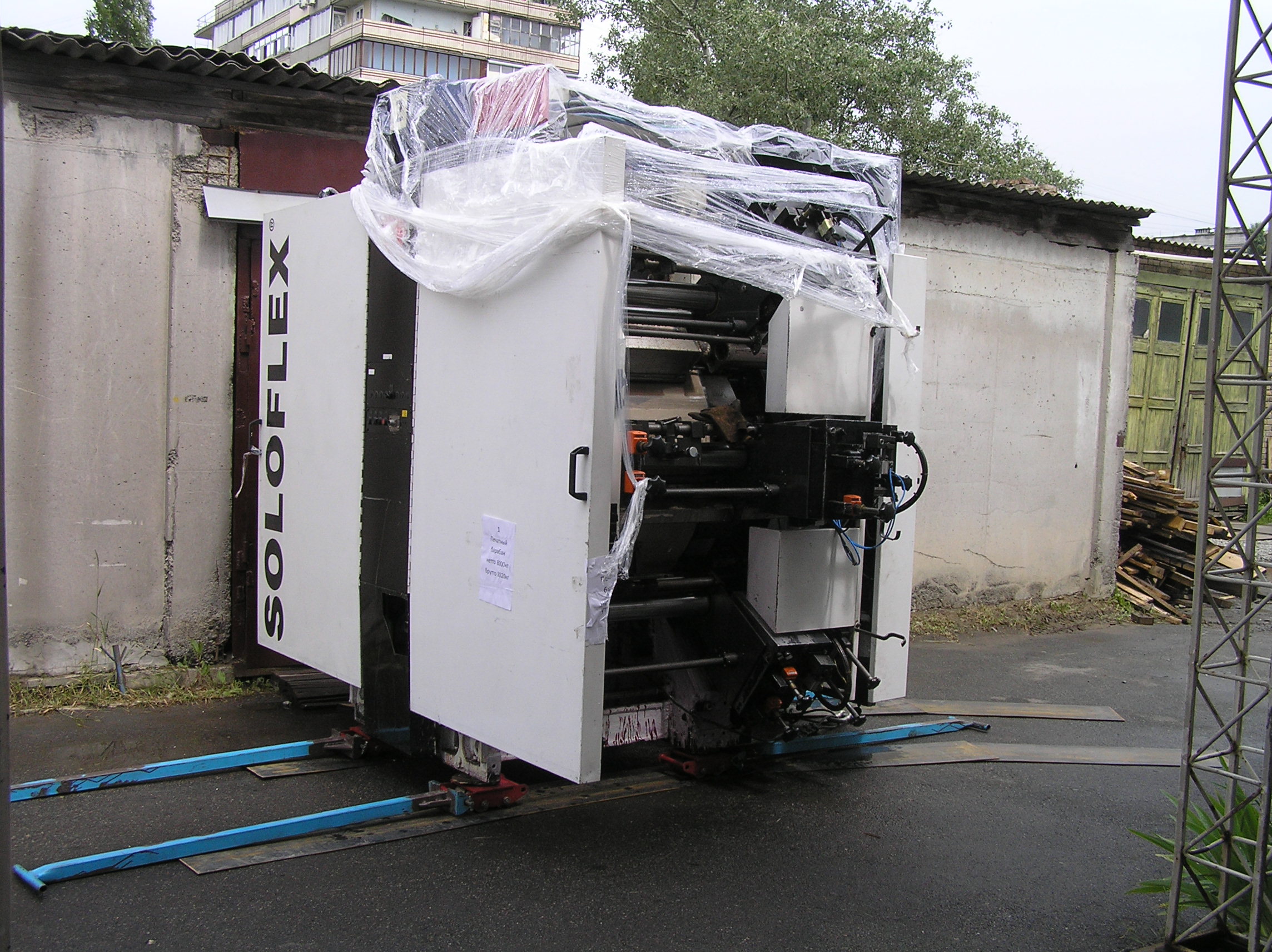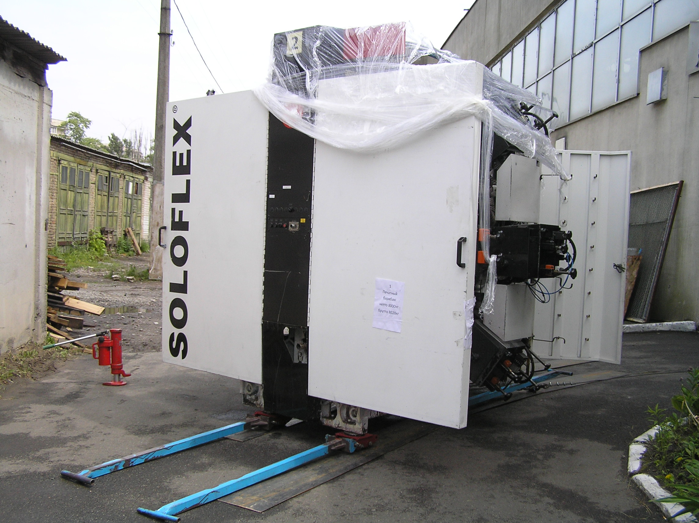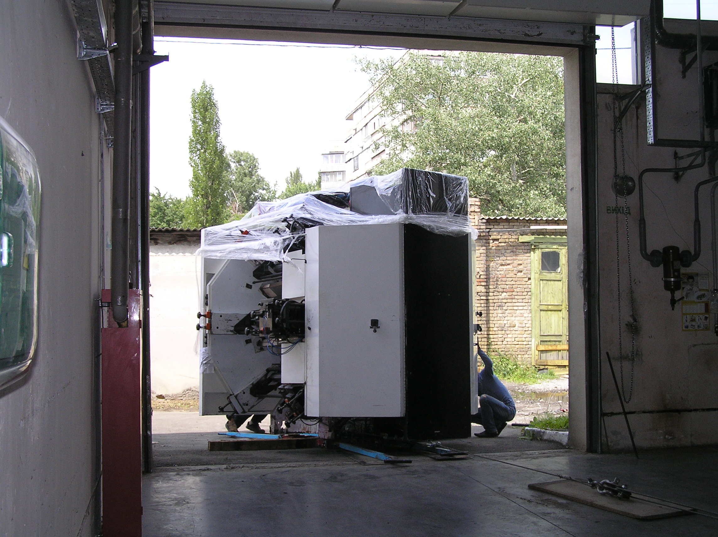 Настала наша очередь решать проблемы. Предстояло переместить станок 50 метров по мягкому асфальту, по нему же с подъемом и поворотом заехать в цех и уже по полированному бетону прокатиться в дальний угол к месту установки.